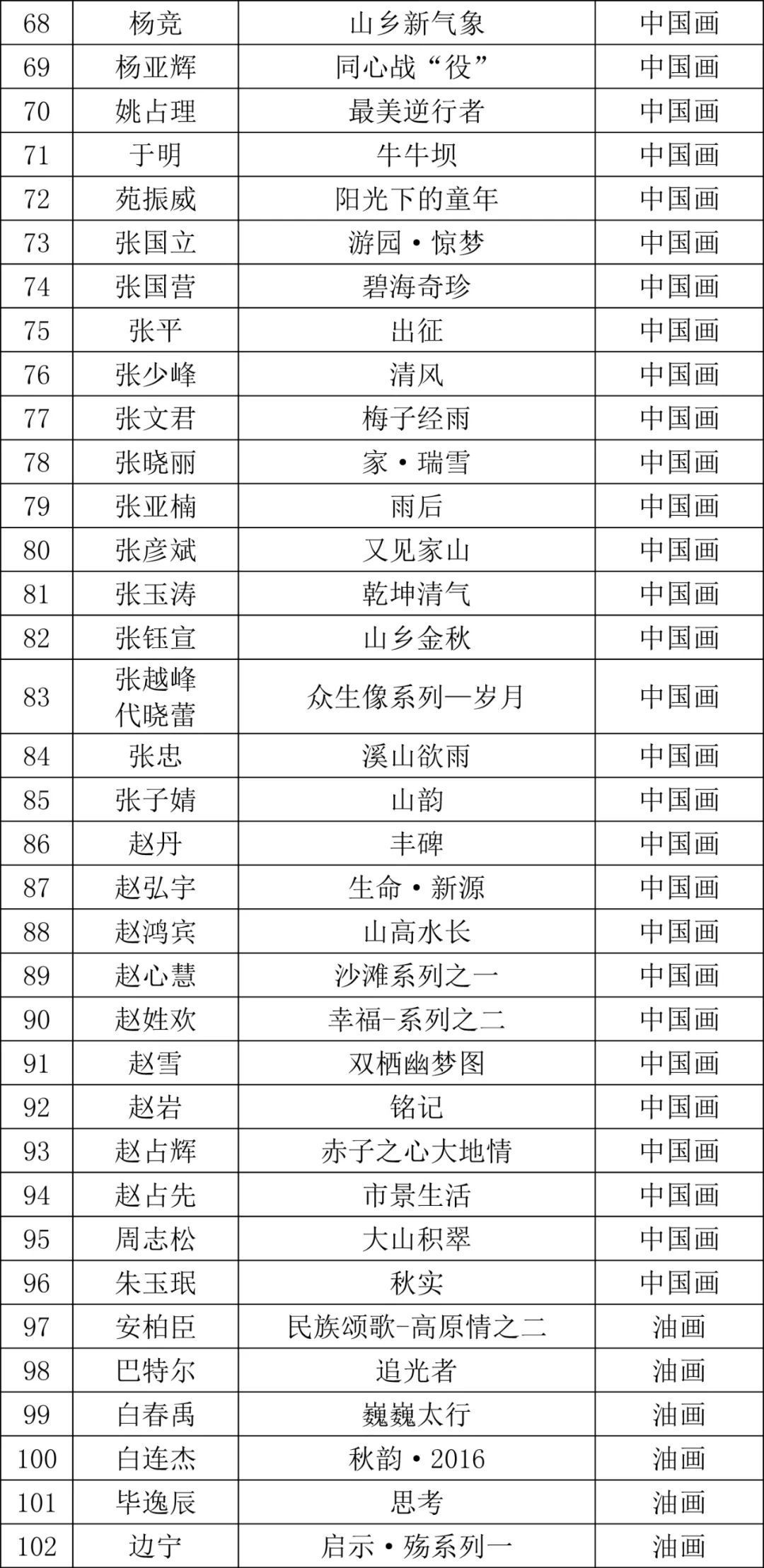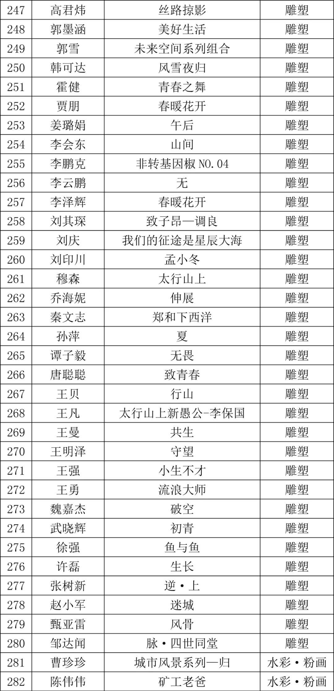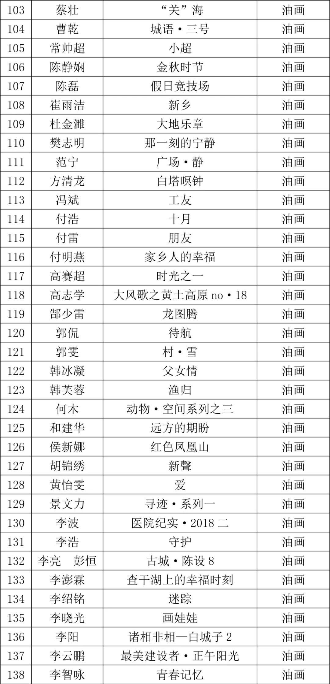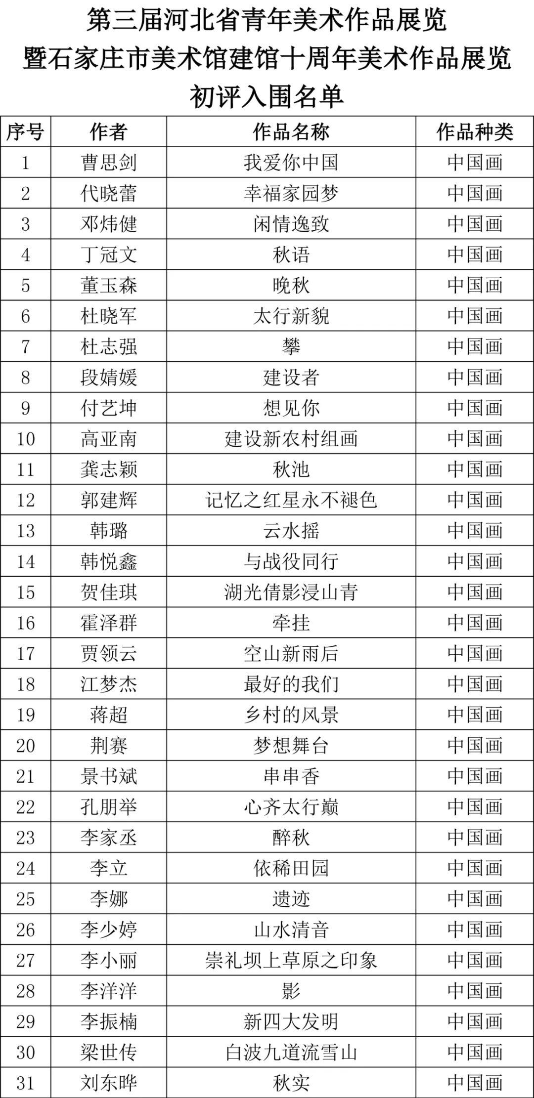 第三届河北省青年美术作品展览暨石家庄市美术馆建馆十周年美术作品展览初评入围名单