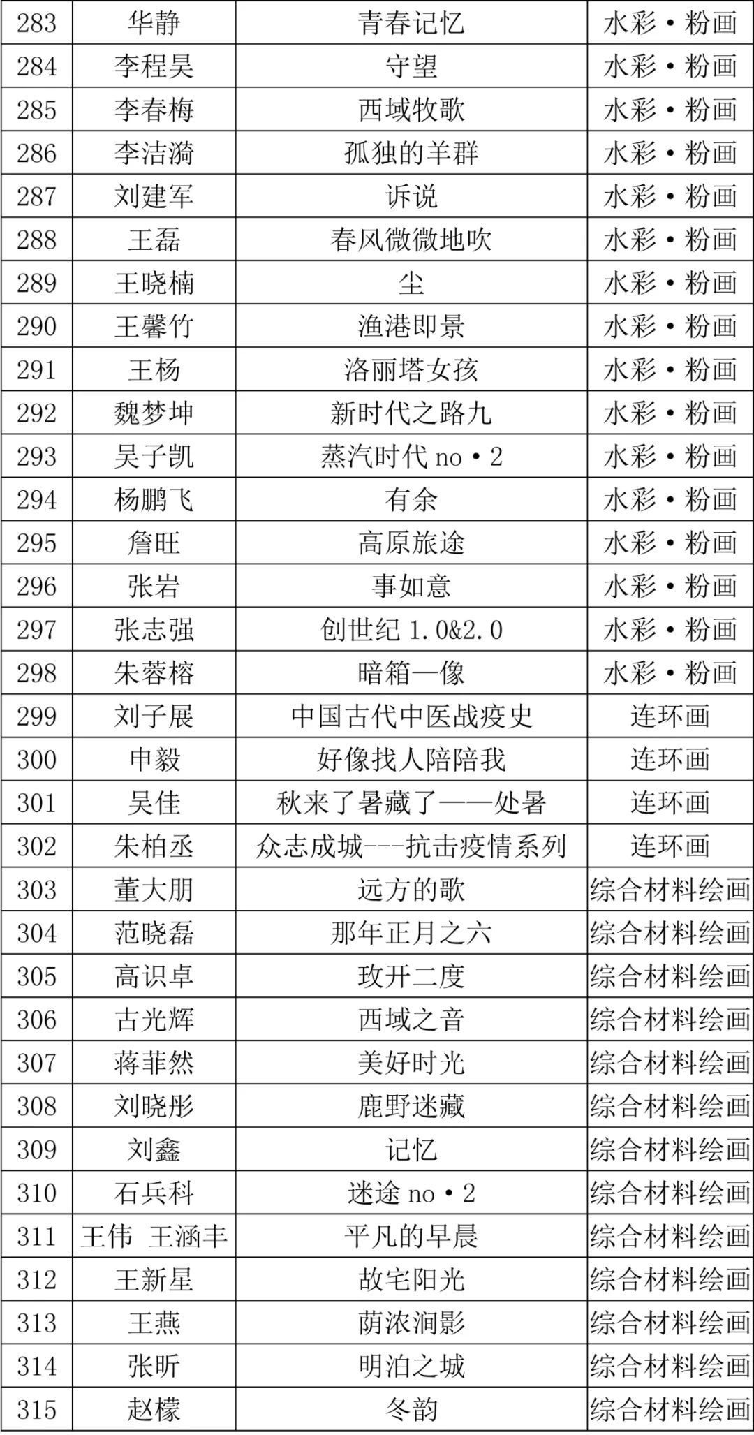 报送参评的作品必须为本公布名单中的作者及其作品,不得更换,原作尺寸大小须严格执行规定。不在此名单内的作者及作品,请勿报送,违反规定的作品展览办公室一概拒收,因此产生的邮寄、保险、安全等后果由作者自负。