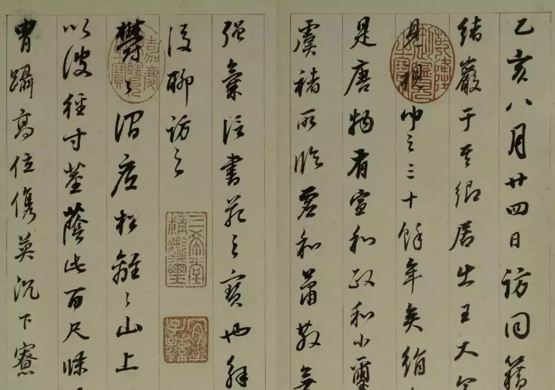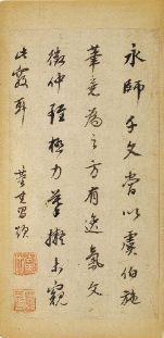一、实临:几无遗恨 所谓实临,就是在临帖时要求笔法、结构、章法等都尽量接近原帖,争取最大程度的相似。这是我们学习书法最初采取的一种临帖方式,也是最为常见的一种临帖方法。董其昌也不例外,曾自信地表示他临某帖“几无遗恨”。他在回忆少时临帖时说:“余少时学虞书,忽于临写时得其用笔之诀,横斜曲直,无不合者。”他曾临唐人《月仪帖》,刻入其《戏鸿堂法帖》中,跋云:“书虽余所临仿,实与真帖颇肖似。”他又曾在临完禇遂良《千字文》以后写道“观者必讶为余本家笔安在也”,表明他的临写是尊重原作的,没有太多自己的笔意,其与原帖的相似程度也令人惊讶。这样的临作在董氏作品中并不多见,或者说今天所能见到的几乎没有,但我们相信他能做到,因为通过他的作品《菩萨藏经后序》,我们读到了他对于《集王圣教序》笔法细腻而深刻的体会,虽是创作,却完全是一派王字风范。只是他不愿意太多地以这种方式临帖,原因很简单,他不愿意无本家笔法。 ☝ 董其昌《临阁帖册》(局部) 二、意临:旄旗一变 所谓意临,就是参以己意的临写,在临摹古帖的过程中融入个人意趣。这是董氏最为常见的临帖方式,这样的临作在董氏作品中随处可见。我们读他的临作,更多地读到的是他参以己意的临帖态度。他强调临摹易传神难,他以画为例,列举巨然、黄子久、倪元镇俱学北苑,而各不相似,“使俗人为之,与临本同,若之,何能传世也”,表明在临摹中应以参入己意为佳,他主张临帖要在离合之间,如果守法不变,即是书家的奴隶。 ☝ 董其昌临魏晋唐宋诸书卷·苏轼(局部) ☝ 苏轼《杭州营籍帖》(局部) 董其昌在《容台别集》中将临帖作了一个颇为形象的比喻:“临书要如李光弼入郭子仪军,旄旗一变。又如苏、张纵横,同出于鬼谷,不为其笼罩,虽肖似不足称也。”这里有两处典故,唐代大将李光弼加入郭子仪的军队,与郭子仪齐名,世称“李郭”。纵横是古九流之一,鬼谷子为战国时纵横家之祖,传说苏秦、张仪均出其门下,苏秦主张合纵,合山东六国以抗秦;张仪主张连横,说六国以奉秦,因成纵横两派。这里的意思是说临帖不要被原帖所囿,肖似并不足取,要入而能出,出而能自成一家,树起自己的旗帜,表明了董其昌的创造性临帖观。 三、背临:抚无弦琴 所谓背临,就是不面对原帖,而是凭印象去临写。这需要临帖者对原帖的文字内容较为熟悉,对原帖的笔墨语言和精神面貌有较深的理解。既然采取背临的方式,临帖者并不希望表面的形似,而是往往融入己意。董其昌在背临锺繇、王羲之帖后跋道:“书云之日,临锺王帖三纸,以无帖本相对,故多出入,然临帖正不在形骸之似也。” ☝ 董其昌《临锺繇戎路表》(局部) ☝ 锺繇《戎路表》(局部) ☝ 董其昌《临欧阳询草书千字文》(局部) ☝ 董其昌《临颜真卿东方朔画赞》(局部) 《昭明太子集·陶靖节传》说,陶渊明不解音律,而备无弦琴一张,每每酒后兴起,抚弄以寄其意。董其昌一定深有感触,他在一件《临禊帖》后跋道:“余书《兰亭》,皆以意背临,未尝对古刻,一似抚无弦琴者,觉尤延之诸君子葛藤多事耳。”我们也在他的多件临作和题跋中见到他“背临”的字样,如“此帖(《官奴帖》)类《禊叙》,因背临及之。”“襄阳书《天马赋》,余所见已四本……因背临及之。”“余以意背临之(《苏古诗册》)殊愧未得仿佛耳。”“《米元章题李伯时西园雅集图记》……因背临此本,稍具优孟衣冠耳。”可见他对古帖常常是记忆在胸,信手拈来,虽有出入,而从容自若。 ☝ 董其昌《临米芾方圆庵记》(局部) ☝ 米芾《方圆庵记》(局部) 四、参合:学不纯师 所谓参合,就是在临帖中参以别帖的意趣。董其昌的参合临摹,其中有些是同一作者的不同碑帖,有些是不同作者的碑帖。有些是因笔法相近,有些则因趣味相合。这是董其昌颇有独到之处的临帖尝试,同样表现出他的创造才能。他认为临智永《千字文》当以虞世南笔意为之,方有逸气,并认为文徵明虽极力模拟未窥此窍。不仅说明智永与虞世南是同一笔法,还说明单从智永学习有得不到的气息,需要参合。他在临李邕《娑罗树碑》时说:“以《大照禅师碑》笔意参合临之。”又说:“楷书以智永《千字文》为宗极,虞永兴其一变耳……余以虞书入永书,为此一家笔法。”又说:“唐摹右军真迹,以《十七帖》为致佳,余临数十本,皆为好事者取去,亦复有膺本。如此本差称意,乃以《王方庆进帖》笔法参合用之。”他还建议若临王羲之某小楷法帖,“当以《宣示表》参合,始称。”这种临帖方法不拘泥于一家一法,他能打通某些帖之间的内在联系,不单一,互通融,是临帖的一种新境界。 ☝ 董其昌临帖跋 五、溯源:一家眷属 所谓溯源,就是追溯原帖笔法的源头,并以此来临帖。他临帖常常溯源,这是他能够打通许多书家之间关系的重要纽带,也是从中寻找笔法规律而使得学习事半功倍的最佳方式。 作为书画鉴定的“巨眼”,对于作者笔法的来龙去脉有着天才般的敏锐,董其昌在读他人作品时善于分析其笔法来源,并常常一语中的。如他读宋高宗的书法时认为:“思陵运笔,全自《玉润帖》中来,学《禊帖》参取。”他在临帖时也常分析帖的源流,并用溯源的方法来学习书法。我们略举几例来说明,他在临禇遂良时说:“《哀册》似王僧虔,亦米书所自出”,又有“以平原《争坐位帖》求苏、米,方知