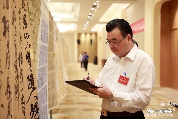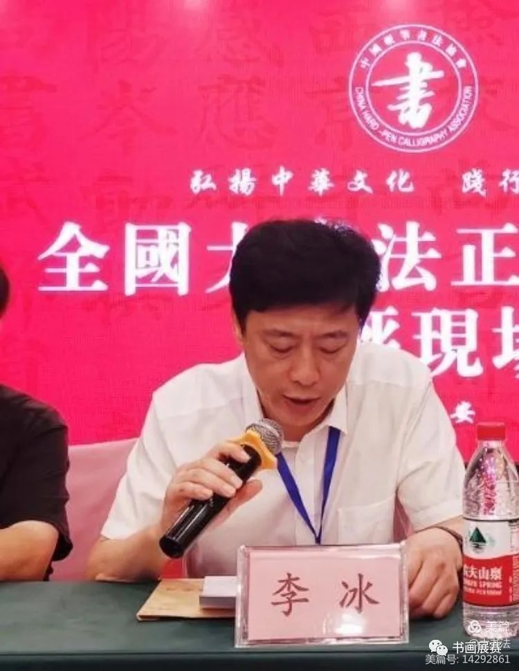 李冰在讲话中衷心地希望各位评委、监委以公平和公正之心不负众望,完成好本次展览的终评工作,充分达到弘扬中华文化,践行大书法,以精品奉献人民,用明德引领风尚的展览目的。在张华庆主席所倡导的“大书法理念”的引领下,通过我们的努力,使我们的大书法艺术不断走进入百花齐放、万紫千红的新时代。
