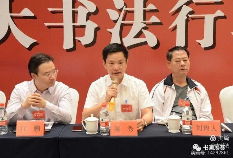 梁秀代表因故未能出席评审工作会议的中国硬笔书法协会党支部书记、副主席兼秘书长李冰宣读了书面讲话。
