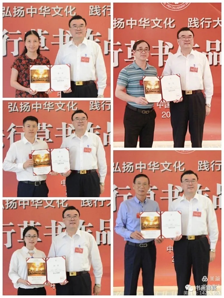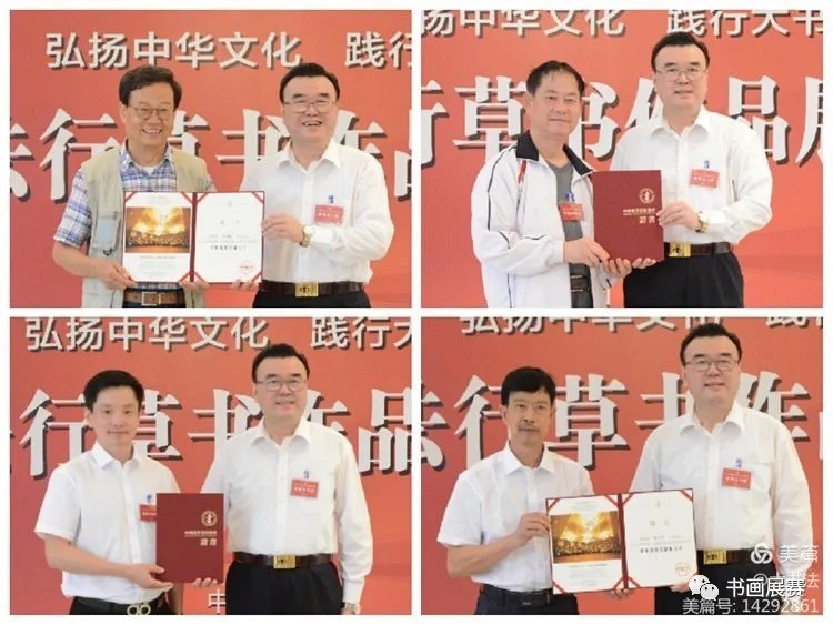 评审工作会议上,张华庆主席代表中国硬笔书法协会向参加全国大书法行草展的评监委颁发了证书。