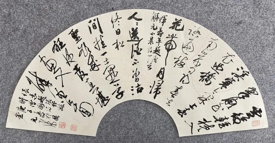 这里专指折扇扇面,它是一种特殊的形式。由于扇面上宽下窄的形状,使得折纹与拆纹之间也是上宽下窄。这种独特的样式,就要求我们在创作时,做出恰当地安排。