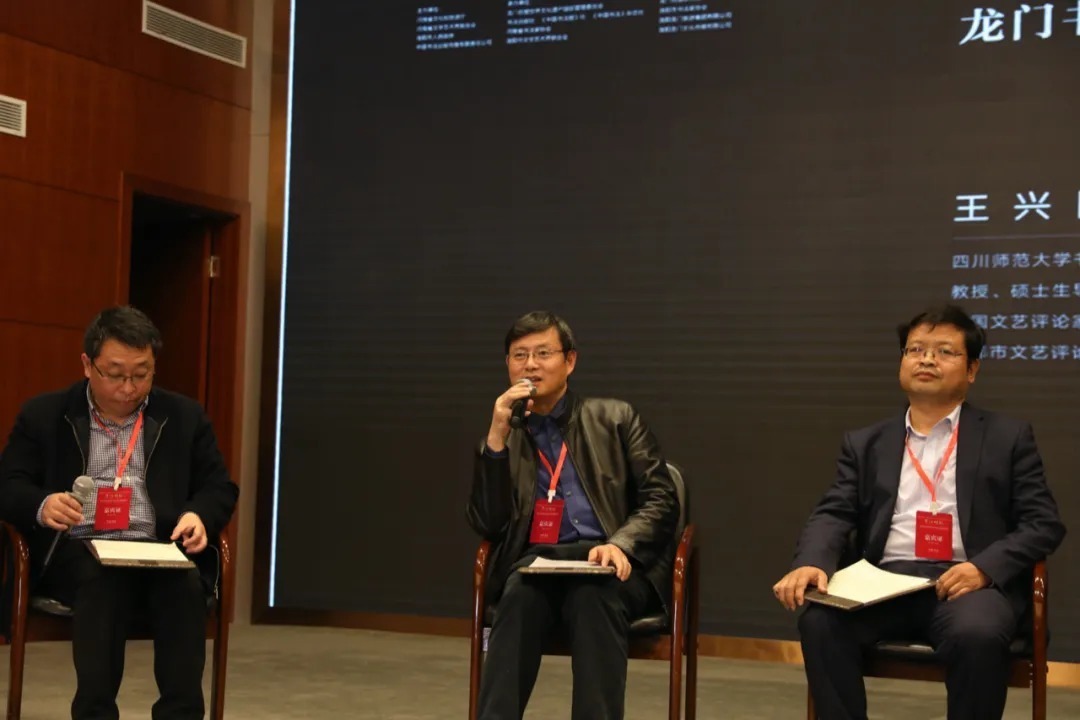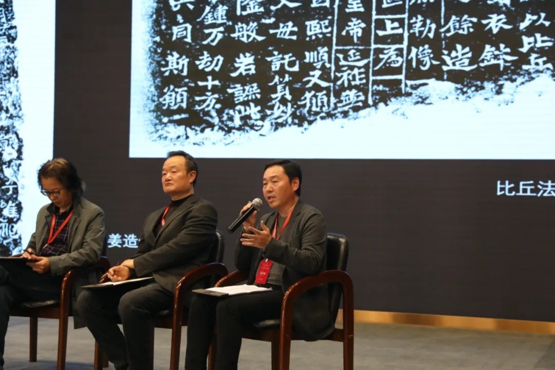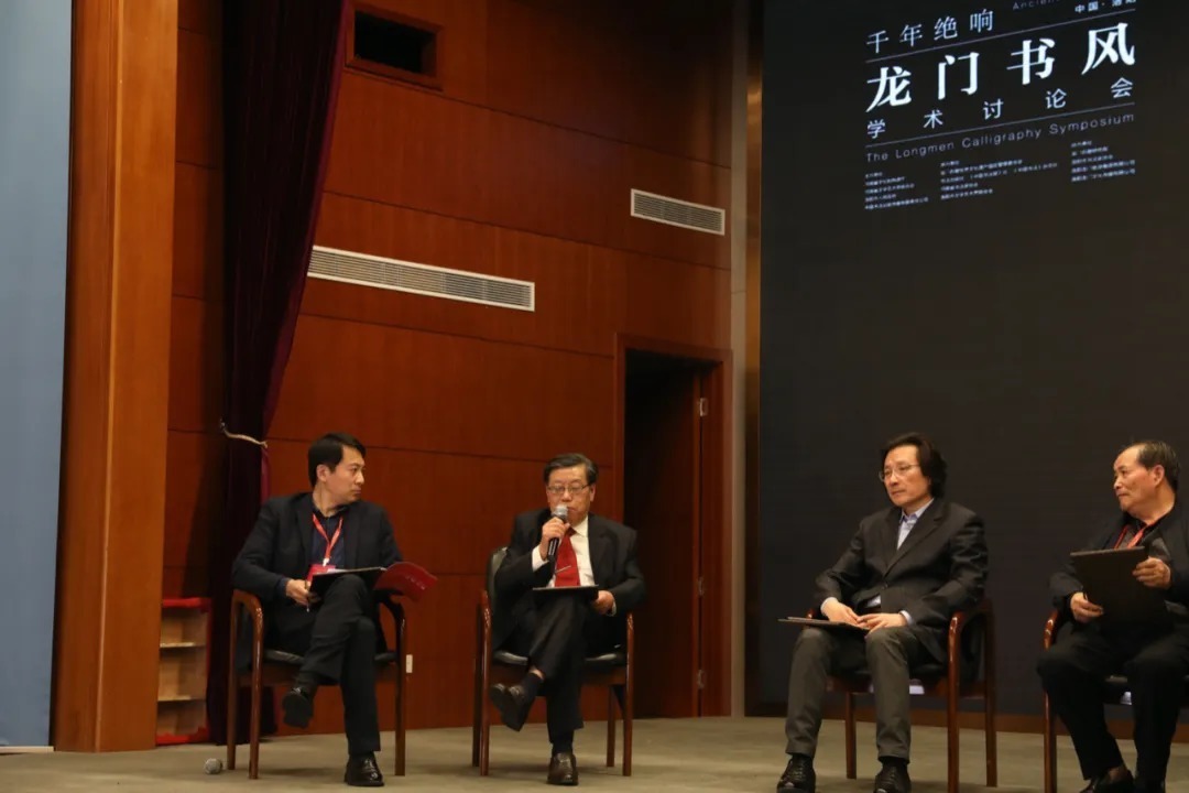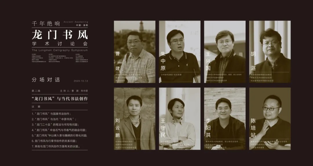 第二场由曹建、朱中原主持,王兴国、胡湛、刘云鹏、王守民、李阳洪、陈培站以“‘龙门书风’与当代书法创作”为主题,围绕“‘龙门书风’与国展书法创作”“‘龙门书风’与当代‘中原书风’”“‘龙门二十品’的笔法与书写性问题”“魏碑创作中金石气与书卷气的融会问题”“以碑入草与魏碑的行草化是否可行”“魏碑创作与行草书创作的关系问题”等议题进行研讨。