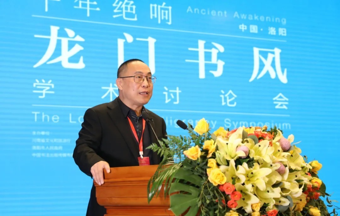 王守国在致辞中表示,书法艺术蕴含着中国传统文化的精髓,承载着中国文化的审美意趣,是中华民族的文化瑰宝。“物之坚者莫如石,石之大者莫如山”,石刻艺术是最经得起时间洗礼的艺术形式。龙门石窟是中华民族的巨大财富,也是世界文化的丰厚遗产。今年我们以书法邀请展和书风讨论会的形式聚在一起,纪念龙门石窟入选《世界文化遗产名录》20周年,相互交流学习龙门石窟深厚的文化内涵,这是非常有意义的。我们广大文艺工作者、文化研究者,要不忘初心、牢记使命,沉下身子认真研究创作,持续发扬创新精神,不断创作出更多的精品力作服务于人民,让书法这门传统艺术在社会文化生活中展现出越来越旺盛的艺术生命、越来越强大的精神力量。