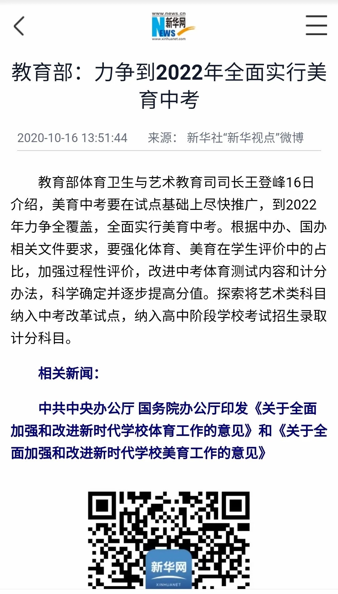 新华社发文!教育部:力争2022年全面实行美育中考!书法美术教育成为“主要科目”