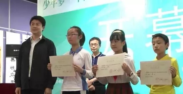 时任共青团深圳市委副书记刘广阳为中小学生组颁一等奖证书