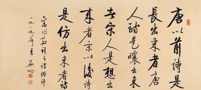 启功的这种线条是怎么炼成的?这和他取法前人有关。熟悉启功的朋友都知道,启功常年坚持临写柳公权的《玄秘塔碑》,不求其他,只为得到那种线条的骨力。总体来说,启功的用笔变化不那么多,在线条方面,确实是大家级别的表现。