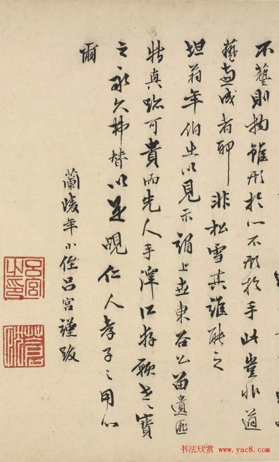 吕宫书法题跋明代佚名仿赵孟頫十六罗汉图,美国弗利尔美术馆藏。