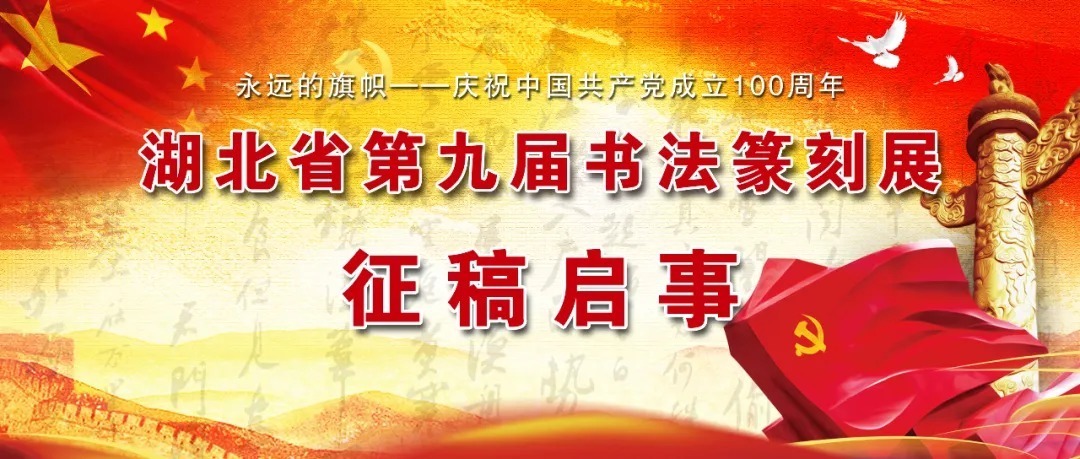 2021年是中国共产党成立100周年,为隆重纪念党的百年华诞,深情回顾党的奋斗历史,热情讴歌党的光辉业绩,以书法艺术语言热情礼赞中国共产党百年光辉历程、伟大成就和宝贵经验,促进湖北书法艺术繁荣发展,检阅湖北书法近五年最新创作成果。湖北省文学艺术界联合会、湖北省书法家协会特举办“永远的旗帜——庆祝中国共产党成立100周年”湖北省第九届书法篆刻展览。现将有关征稿事项公告如下:年满18岁在湖北长期居住、工作或湖北籍在外工作的公民均可投稿。