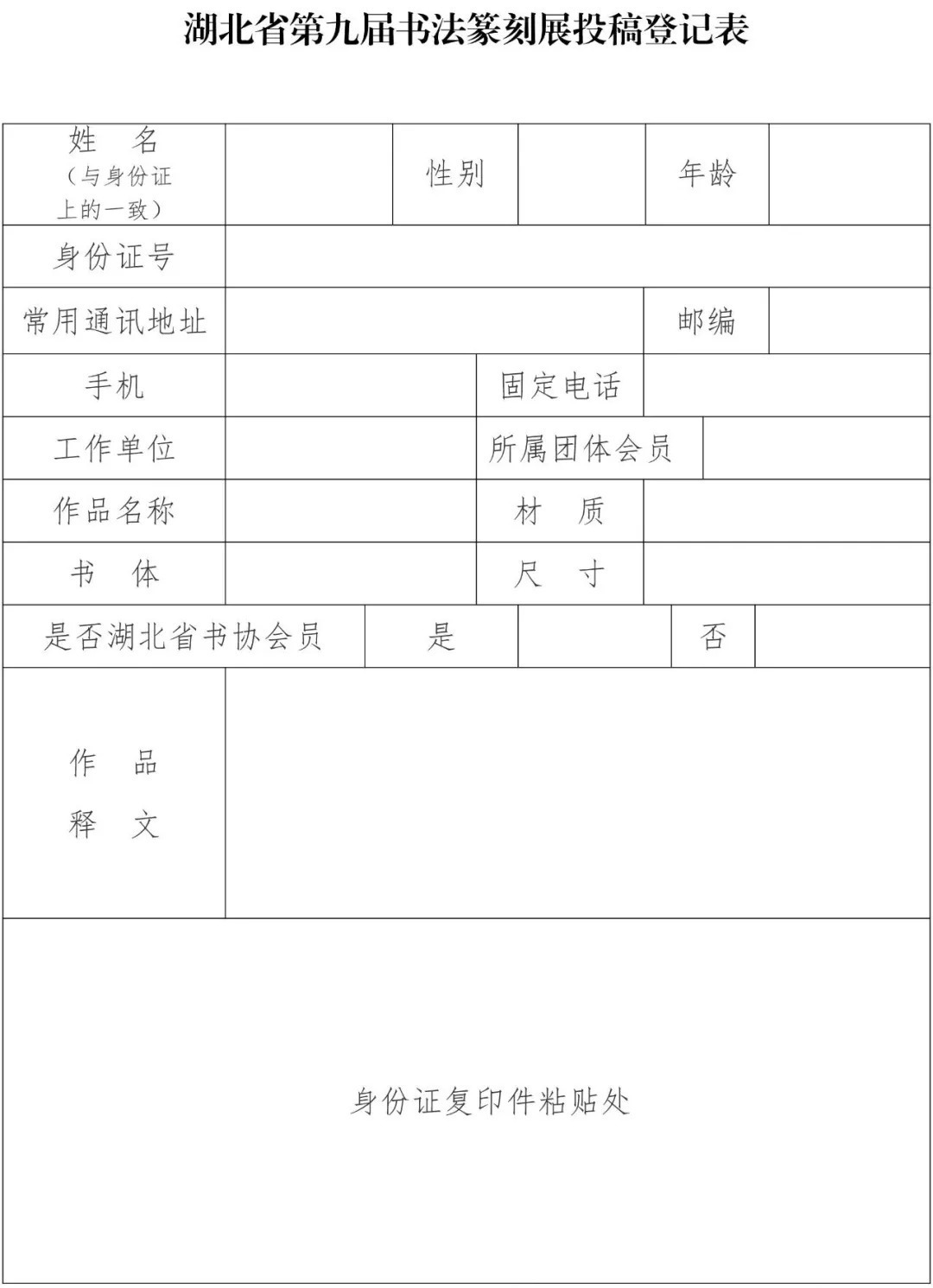 1、作品书写健康向上、富有新意的内容。提倡自撰书写内容(艺术水平同等条件下优先),歌颂中国共产党丰功伟绩、团结和带领全国各族人民不懈奋斗的伟大贡献。作品在6尺整张宣纸以内(超过6尺整张宣纸的作品不予评审)。书体不限,只收竖式作品。篆书、草书作品附释文。2、可多书体(含篆刻、刻字)同时投稿(最多5件),每种书体限投一件,邮寄时需在外包装明显位置注明书体、件数、地区。同一作者不同书体作品经评审均可入展。3、篆刻作品请自行设计并粘贴于横30cm、纵50cm宣纸上,自题签条,印拓4—8方,附边款2方(一式二份,一份用于参展,一份用于编印作品集)。按通知要求,篆刻入展作者寄送原石一方随印屏展出。5、刻字作品先寄作品照片,并附释文,入选后根据通知寄、送原作。6、作品请勿装裱(除册页外,送裱件作品不予评审)。7、请在作品背后左下角(刻字作品在照片背后)用铅笔楷书标明姓名、性别、年龄、印章释文、联系地址、电话、邮编。8、参评作者必须用真实姓名(因非真实姓名影响作品评选,评委会不负责任)。采用集体送稿与自由投稿相结合。集体送稿的,团体会员应将作品、汇总登记表一并交湖北省书协指定收稿地点。一位作者允许多件作品参加评选,但姓名必须一致,一次性交齐,以利提高评审工作效率。本着公平、公正、公开原则进行评审。拟评选出入展作品450件左右,并从中评选出优秀作品30件,评选入选作品100件(作品不展出)。评审由湖北省书法家协会组成评审委员会主持评审工作。凡入展、入选作者,颁发证书,赠送展览作品集,非湖北省书协会员的作者具备入会资格。优秀组织奖颁发奖牌。七、本次展览入展作者名单将按照各市州团体会员属地进行公布,请各市州及直属团体会员认真组织、广泛发动。征稿自本启事发布之日起至2021年3月31日截止(以当地邮戳时间为准)。九、入展作品统一装裱,装裱由湖北省书协专项经费出资。展后作品退还作者本人。未入展的作品,限于人力恕不退稿。湖北省第九届书法篆刻展览于2021年6月份开幕,同时首发《湖北省第九届书法篆刻展览作品集》。地 址:湖北省仙桃市黄金大道福星城南门5栋101号集芳园 仙桃市书法家协会电 话:13597454387;0728-3499555凡投稿者视同认可本启事。本启事解释权归湖北省书协。