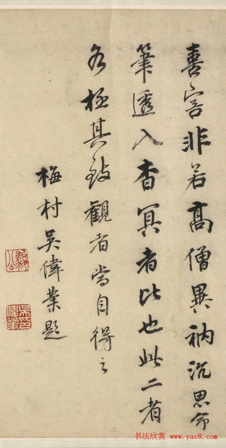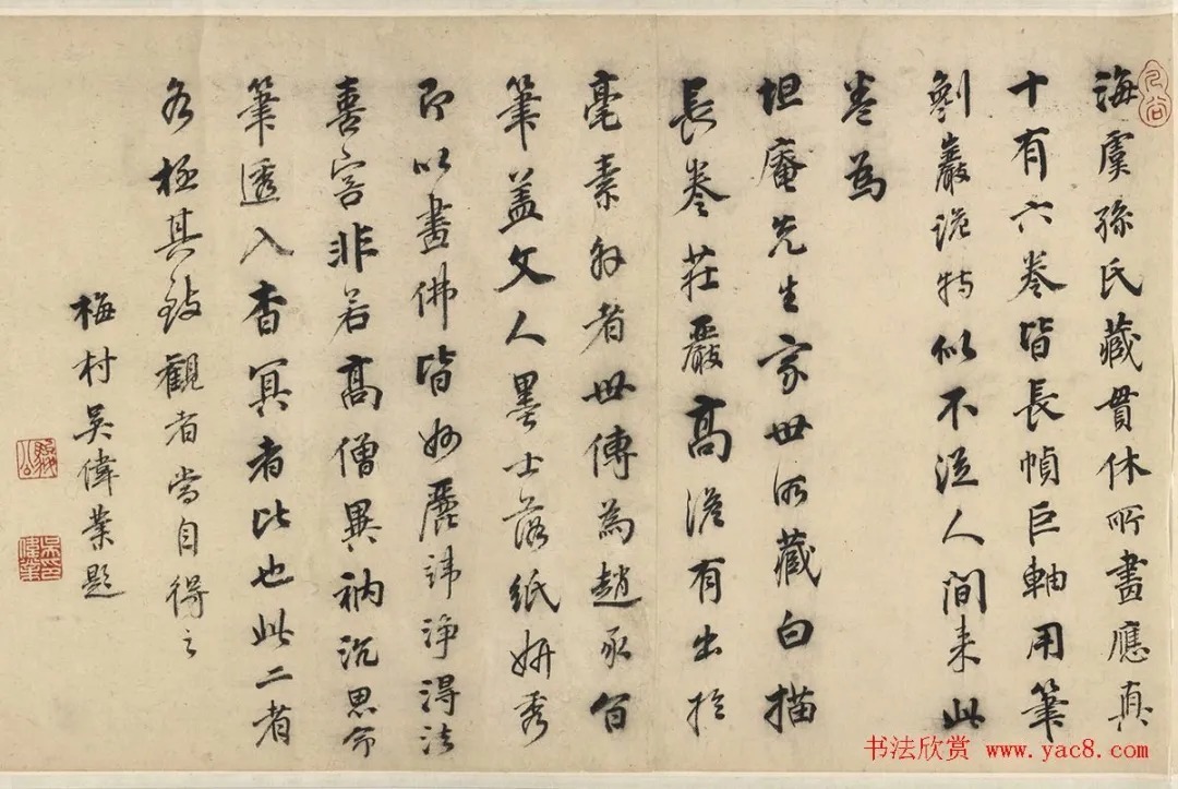 吴伟业书法题跋明代佚名仿赵孟頫十六罗汉图,美国弗利尔美术馆藏。