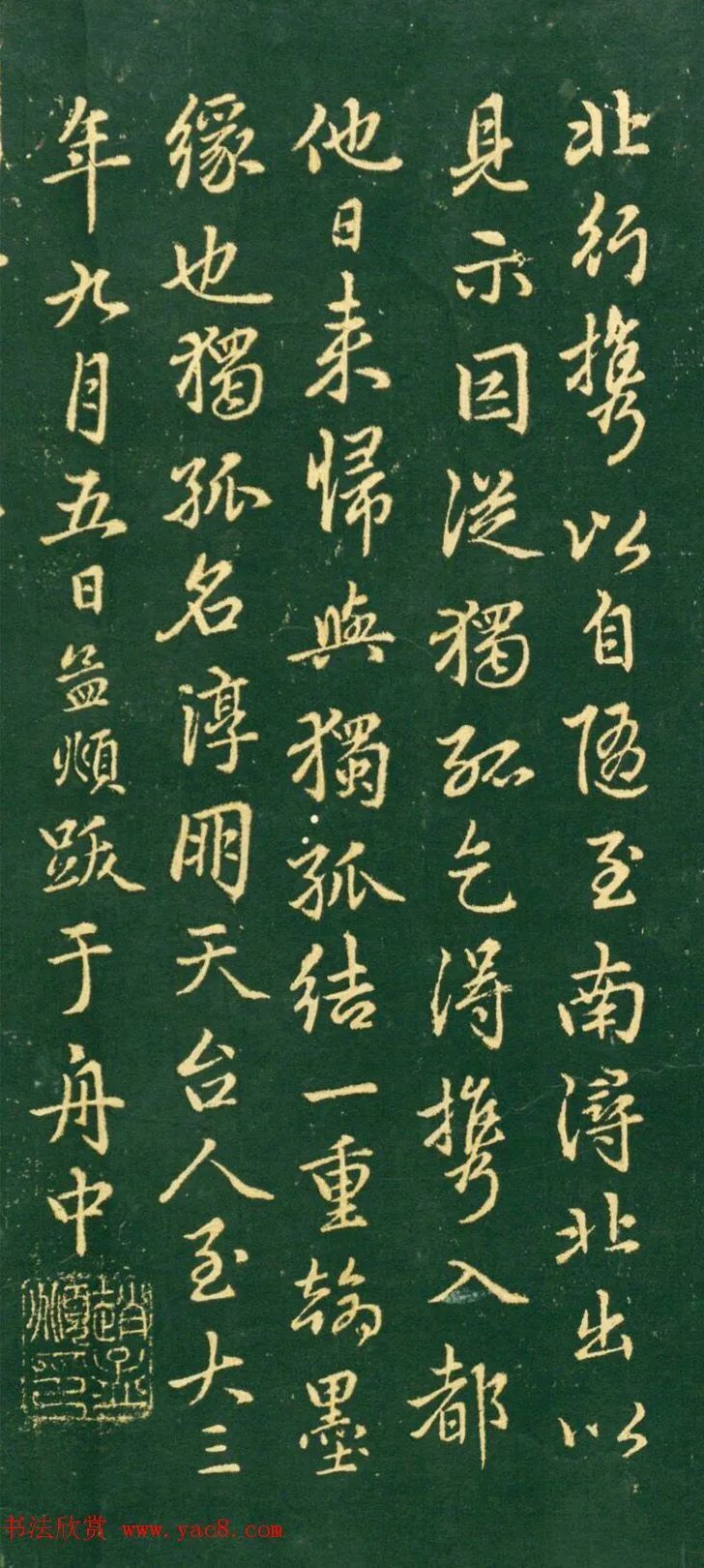 兰亭帖自定武石刻既亡,在人间者有数。有日减,无日增,故博古之士以为至宝。然极难辨。又有镵损五字者,此盖未损者,其本尤难得。独孤长老送余北行,携以自随。至南浔北,出以见示。因从独孤乞得,携入都。他日来归,与独孤结一重翰墨缘也。独孤名淳朋,天台人。至大三年九月五日,孟頫跋于舟中。