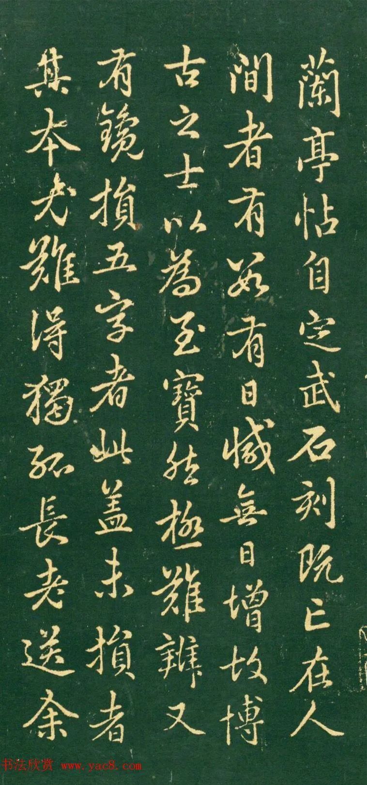 兰亭帖当宋未度南时,士大夫人人有之。石刻既亡,江左好事者,往往家刻一石,无虑数十百本,而真赝始难别矣。王顺伯,尤延之诸公,其精识之尤者。於墨色、纸色、肥瘦秾纤之间,分毫不爽。故朱晦翁跋兰亭谓:“不独议礼如聚讼”,盖笑之也。然传刻既多,实亦未易定其甲乙。此卷乃致佳本,肥瘦得中。与王子庆所藏赵子固本无异,石本中至宝也。至大三年九月十六日。舟次宝应重题。