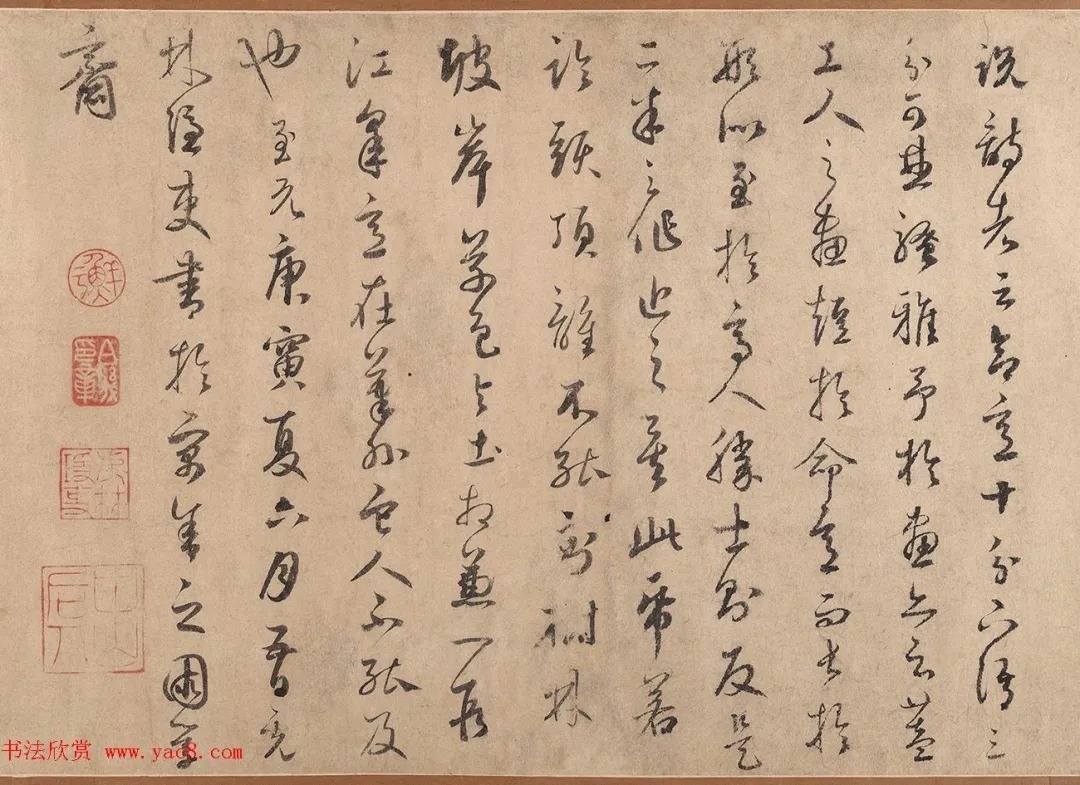 鲜于枢书法《跋米友仁云山得意图》,美国大都会艺术博物馆藏。
