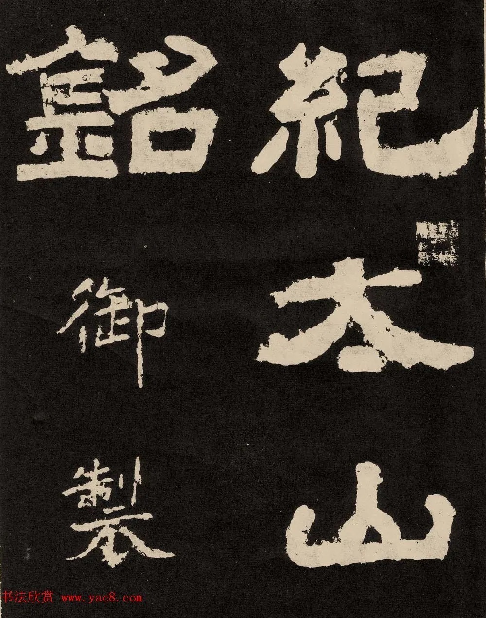 《纪太山铭》书法遒劲婉润,端严雄浑。文词典雅,相传由燕许修其辞,韩史润其笔。隶书遒逸,碑刻体伟幅巨,金光夺目,在泰山的石刻中最为瞩目,是十分珍稀、瑰丽的国宝。