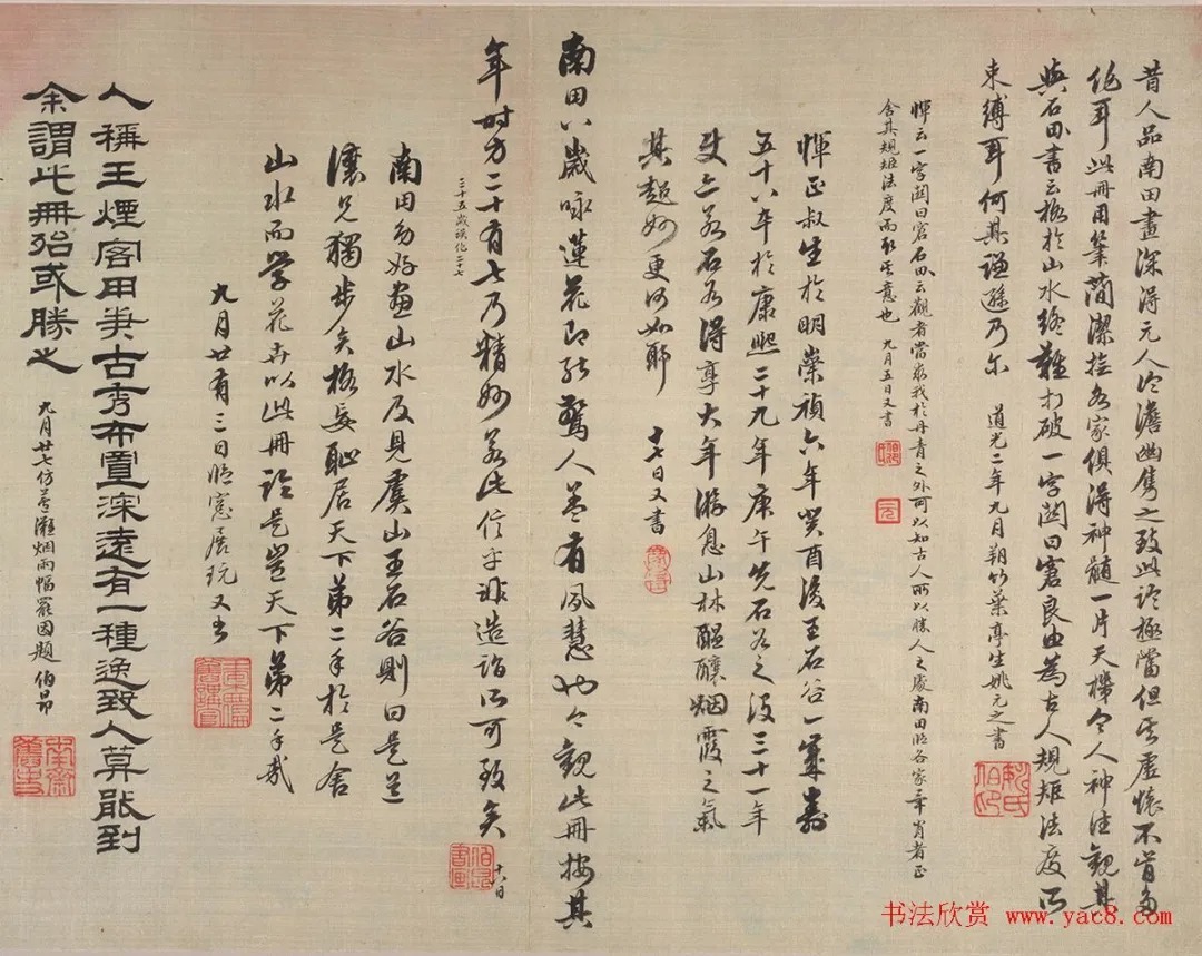清代著名书画家姚元之书法题恽寿平仿宋元诸家山水册,美国大都会艺术博物馆藏。