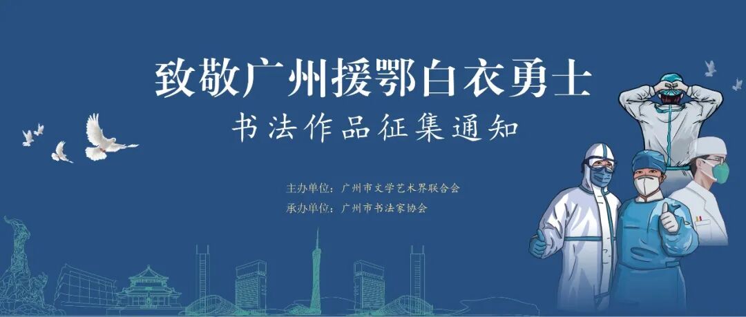 在白衣勇士平安凯旋之际,广州市文联发起、组织开展“致敬广州援鄂白衣勇士”系列活动。为表达广州文艺家、文艺工作者对援鄂白衣勇士的致敬和礼遇,为抗疫一线医务人员奉上最真诚的献礼,展现广州文艺界对抗疫行动的鼎力支持,奏响医艺携手抗疫的感人乐章,现向会员作者征集“致敬广州援鄂白衣勇士”书法捐赠作品。