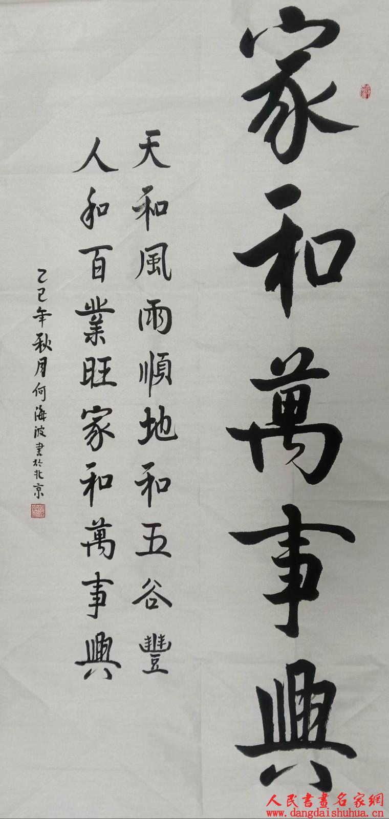 何海波,45岁,1980年出生于安徽怀远,人民书画名家网会员。自幼受家学熏陶,后进修于西安交通大学,他喜爱书法,在中书协名师的指点下临写邓石如、欧阳询等名家的作品,至今已有多年的书法研究经历。多副作品入展抗战胜利80周年第十三届中国梦想杯书画展,作品天道酬勤荣获华夏兰亭杯、秦韵杯全国书画大赛优秀奖。作品前程似锦荣获书韵杯全国书画艺术大赛特等奖,作品家和万事兴在扶摇阁全国艺术大赛中荣获特等奖,作品知足常乐荣获第四届神州颂诗书画艺术年赛三等奖,他是中国书法家协会会员,国家高级书法师,2024年国家两会国礼艺术家,张大千书画研究院研究员,中华英雄精神传承文化研究会爱心传播大使,2022年北京奥林匹克运动会艺术形象大使,安徽共青团老团干部,被评为2025年度书法名师。