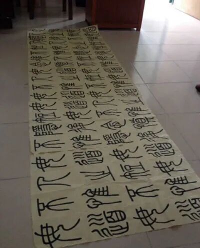 黎氏水拿出前两天刚刚完成的一幅小篆书法作品摆在桌面上,记者看到,文字笔画圆润,字体线条端庄,同样十分工整漂亮。黎氏水有点不好意思地说,她是今年6月加入西大书画协会后,才开始学写毛笔字的,记者不由得又吃了一惊。