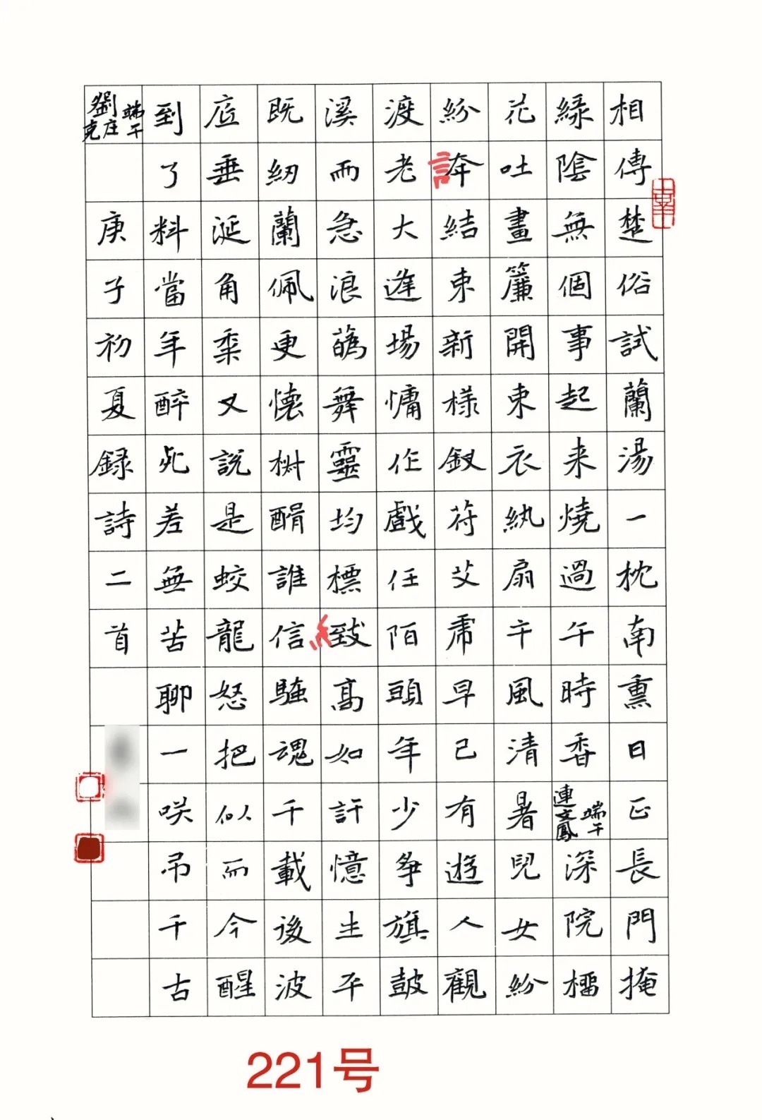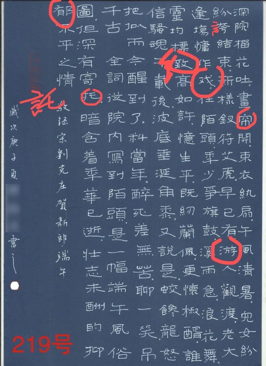 全国硬笔书法网络展,在文字审读过程中发现繁简转化类和字法类错误较多,都作降级或取消评级资格的话超过三分之一(这其中书写水平高的作品所占比重很大),本着以艺术水准为第一追求的指导原则下,经全体评委再三考虑、斟酌利弊,特决定不再对文字错误做减分降级处理!现将发现之问题刊登,希望引起所有书友对作品中文字类用法的高度重视和关注!以后若再次举办比赛,将会对文字类错误零容忍! 用法错误、错字、漏字、内容不完整及与主题无关现象比较严重!因为本身水平条件的限制,所有纠错之处难免也出现错误,欢迎广大书友们提出改正意见!在此表示感谢!