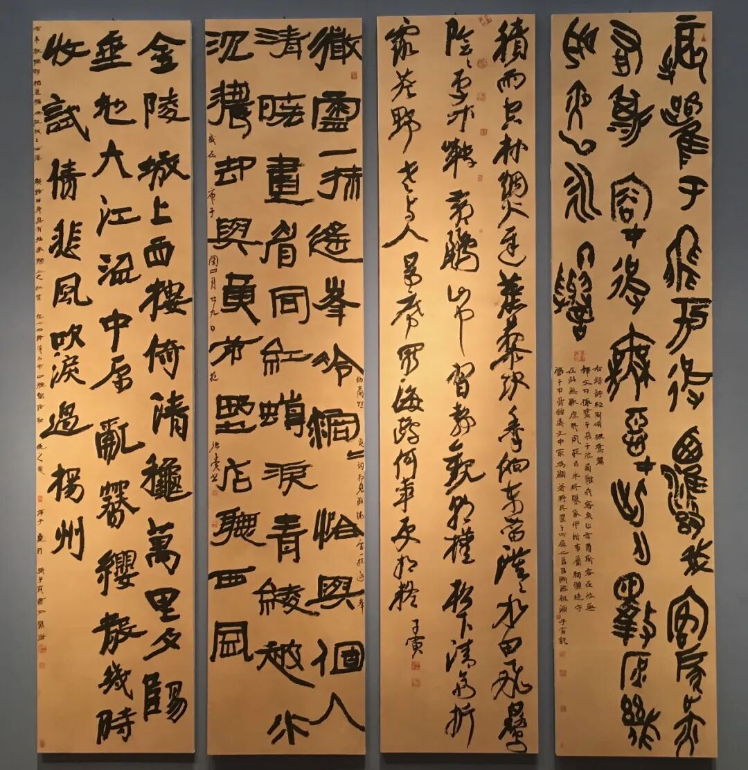 黄建森 楷书 陈孔璋《檄文二则》 192cm×121cm 黄建森 篆刻 《黄建森篆刻选》 温安俊 楷书 节录《西都赋》 120cm×28cm×8 温安俊 篆书 节录《三略·中略》 248cm×120cm << 滑动查看下一张图片 >> 温安俊 篆刻 篆刻组件 朱科宇 装置 《道德经八百方》 100cm×200cm×4 谢赛雯 篆书 《泉从云与联》对联 180cm×25cm×2 谢赛雯 楷书 苏轼《论书》立轴 284cm×55cm << 滑动查看下一张图片 >> 谢赛雯 篆刻 《篆刻印屏》 张子寅 四体书 古代爱情诗四首 72cm×340cm×4 << 滑动查看下一张图片 >> 张子寅 篆刻 《边款印象》 崔泽超 小楷 节录杜甫诗 15cm×22cm×9 崔泽超 行书 《摩诘诗选》组件 31cm×33cm×8 << 滑动查看下一张图片 >> 崔泽超 篆刻 篆刻组印 << 滑动查看下一张图片 >> 阮天伦 行书 《东坡词选》卷 35cm×400cm 阮天伦 楷书 节录韩愈诗 260cm×180cm << 滑动查看下一张图片 >> 阮天伦 小楷 节录《花间集》册 30cm×150cm << 滑动查看下一张图片 >> 阮天伦 篆刻 《天伦印痕》 陈奂 楷书 阮籍《咏怀诗》 270cm×200cm << 滑动查看下一张图片 >> 陈奂 书法、篆刻 《秦诏版印象·橘颂》 << 滑动查看下一张图片 >> 陈奂 篆刻 《小陈刻印》 张磊 隶书 东方朔《诫子书》屏 368cm×120cm << 滑动查看下一张图片 >> 张磊 篆刻 篆刻组件 金雨娴 楷书 曹唐《游仙诗选》屏 182cm×20cm×4 金雨娴 篆书 节录陈继儒《小窗幽记·集素篇》立轴 金雨娴 篆刻 白云处处长随君 金雨娴 篆刻 空山有雪相待 姚澜 篆书 《水调歌头·游泳》 180cm×61cm 姚澜 篆刻 《杭帮菜》 宁作超 楷书 张仲景《伤寒杂病论序》屏 78cm×244cm 宁作超 篆书 集宋词联 19cm×180cm×2 宁作超 行草 陆龟蒙《茶具十咏之一》屏 62cm×244cm << 滑动查看下一张图片 >> 宁作超 小楷 陆羽《茶经》卷 宁作超 篆刻 篆刻组合 鞠杨 行草 陆龟蒙《茶具十咏之一》屏 62cm×244cm << 滑动查看下一张图片 >> 鞠杨 篆刻 《篆刻组件》 杨子腾 草书 节录《赤壁赋》150cm×95cm << 滑动查看下一张图片 >> 杨子腾 篆刻 篆刻组印 王子豪 小篆《湘江赋》230cm×45cm×4 王子豪 紫砂壶全形拓 《咏茶》 205cm×30cm×4 << 滑动查看下一张图片 >> 王子豪 篆刻 印纽主题性创作(部分) 刘开任 草书 节录董其昌《画禅室随笔》立轴 62cm×245cm 刘开任 楷书 节录王宜山《围炉夜话》轴 62cm×225cm << 滑动查看下一张图片 >> 刘开任 篆刻 篆刻 《雪酌梅花斋印痕》 李嘉茵 楷书 《曹植书牍二篇》 248cm×129cm 李嘉茵 小篆 《拟古四首》《李太白古风十二首选录》 李嘉茵 篆刻 《嘉茵印迹》 张鹏 篆书《黄庭坚弈棋诗二首》屏 167cm×79.4cm << 滑动查看下一张图片 >> 张鹏 篆刻 《张鹏篆刻》 黄雅玲 大篆 孟子句 190cm×68cm 黄雅玲 隶书 《久离别》 轴 248cm×129cm 黄雅玲 篆刻 黄雅玲篆刻 罗锡清 楷书 苏轼《赤壁赋》 120cm×200cm 罗锡清 行书 米芾《海岳名言》 100cm×120cm 罗锡清 篆书 苏轼《与子由论书》 120cm×200cm 罗锡清 篆刻 罗锡清篆刻 << 滑动查看下一张图片 >> 李配志 行草 高濂《四时幽赏录诗》卷 548cm×49cm