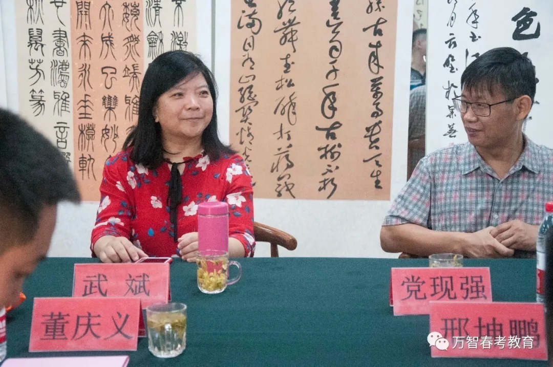 山东省青年书法家协会顾问、济南市青年书法家协会顾问、济南市历下区书法家协会主席武斌,山东省青年书法家协会副主席兼教育委员会主任、济南市青年书法家协会顾问党现强,山东省教育书法家协会副秘书长、济南市青年书法家协会顾问李钧,山东省青年书法家协会监事委员会主任、济南市青年书法家协会监事会主席景彪,山东省青年书法家协会副秘书长、济南市青联常委、济南市青年书法家协会常务副主席刘潜坤,山东省青年书法家协会副秘书长、济南市青年书法家协会副主席吴秀峰,济南市青年书法家协会副主席兼宣传委员会主任李之刚,山东省青年书法家协会篆刻委员会副秘书长、济南市青年书法家协会主席团委员谷伟,山东省青年书法家协会理事、济南市青年书法家协会常务副秘书长孙瑒及万智教育集团旗下东影摄影、蓝航空乘、万智春考、子墨书法等相关学校负责人出席揭牌仪式。活动由山东省艺术教育专家指导委员会秘书长,山东省当代教育研究院院长邢坤鹏主持。