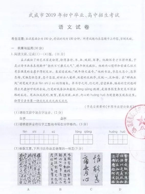2020高考试题曝光 书法知识占比越来越高 前年(2018年)占9分 去年(2019年)占17分 今年(2020年)居然达44分 该重视了!