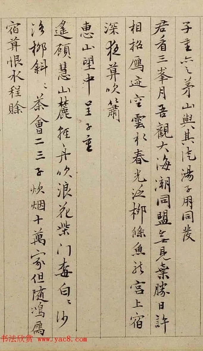 明代蔡羽书法诗卷,来源:文徵明《惠山茶会图》卷跋尾,北京故宫博物院藏。