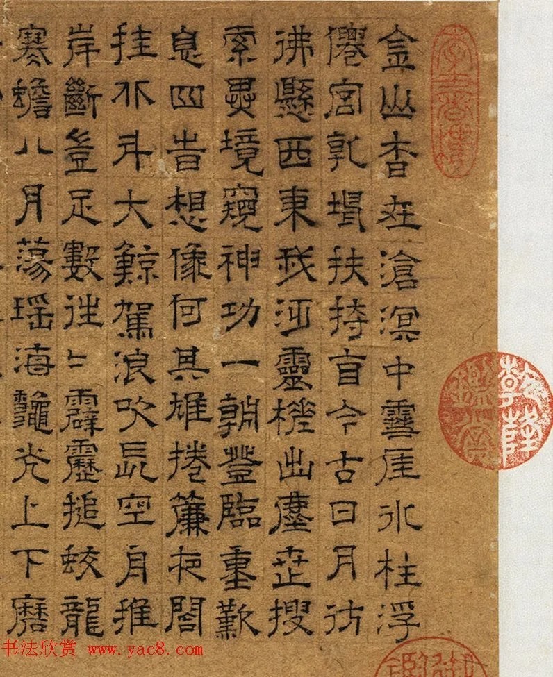 画上隶书题:金山杳在沧溟中。雪厓冰柱浮仙宫。乾坤扶持自今古。日月仿佛悬西东。我泛灵槎出尘世。搜索异境窥神功。一朝登临重叹息。四时想像何其雄。卷帘夜合挂北斗。大鲸驾浪吹长空......舟中戏墨作。徵明