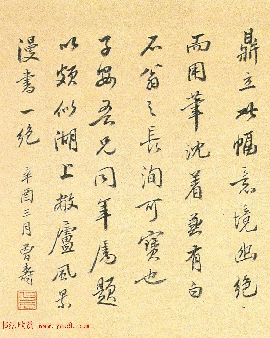 陈曾寿行书《漫书一绝》,弘仁山水图跋文,上海博物院藏。