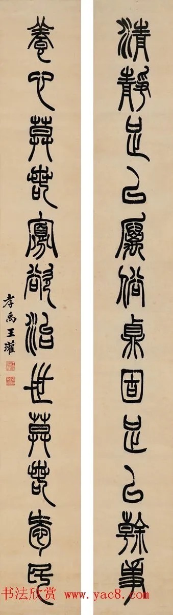 王瓘篆书八言联,137.5×33.5cm×2,来源:西泠印社拍卖会,成交价RMB: 42,560(含佣金)