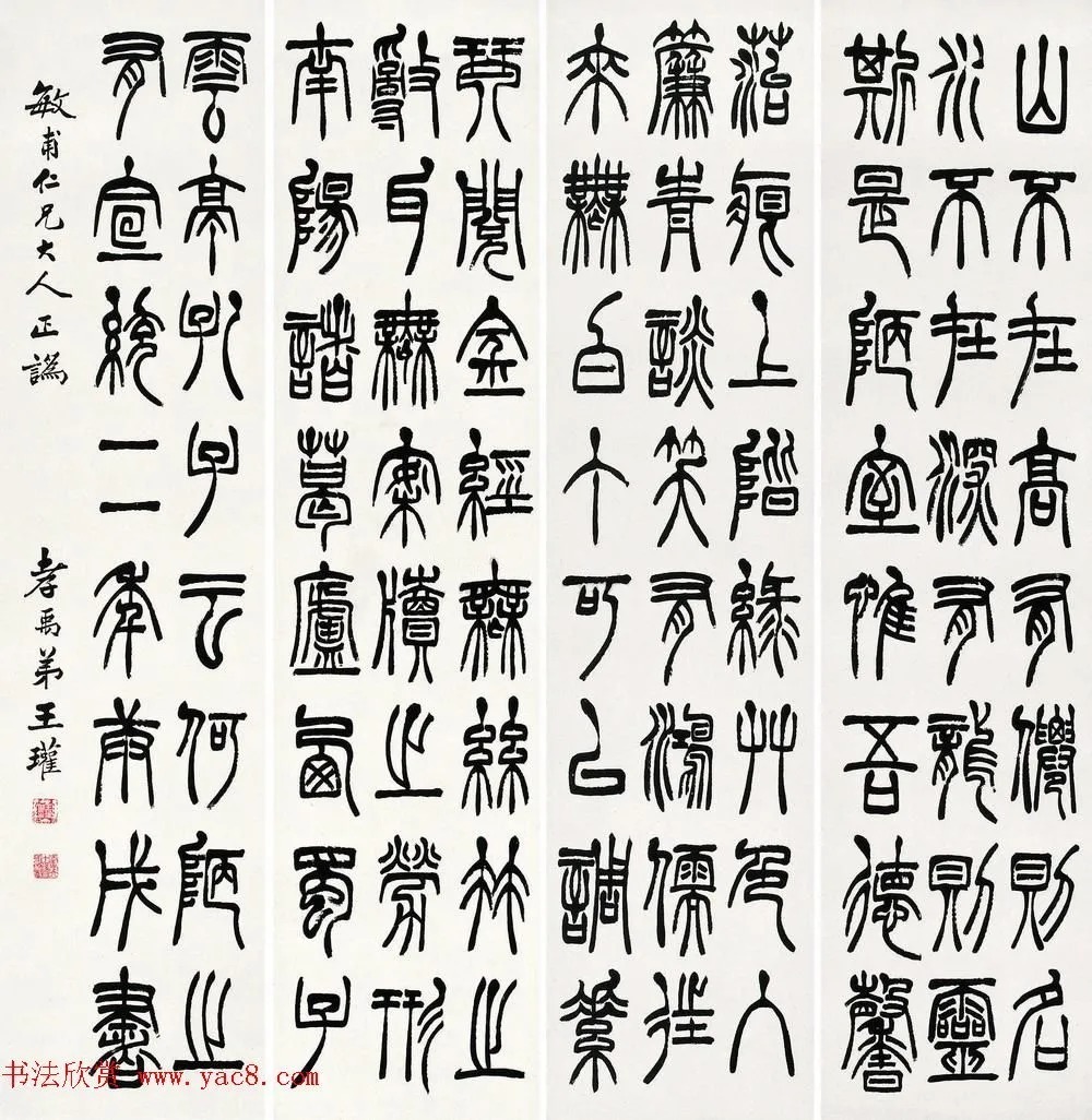 王瓘篆书《陋室铭》,132.5×32cm×4,来源:上海崇源艺术品拍卖。