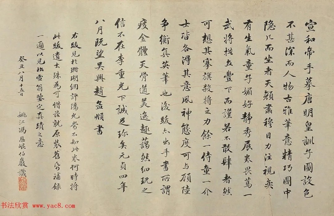 冯恩昆书法补录赵孟頫鉴定题跋,来源:清佚名(传赵佶)明皇训储图卷,美国大都会艺术博物馆藏。