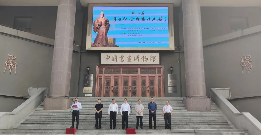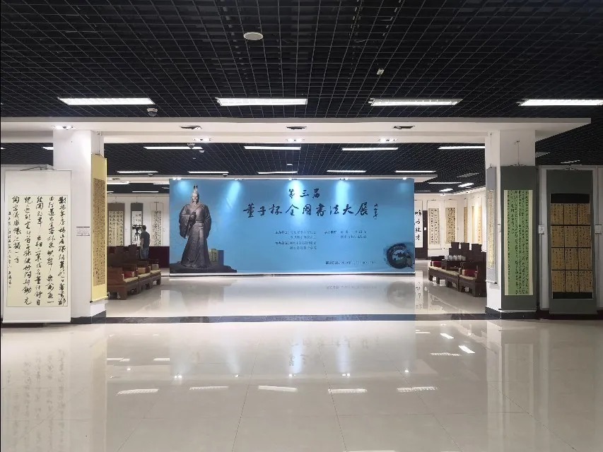 “董子杯”全国书法大展开展 9月20日,第三届“董子杯”全国书法大展在衡水中国书画博物馆开幕。衡水市人民政府市长吴晓华宣布展览开幕。河北省政协副秘书长马誉辉,中书协副主席、河北省书协主席刘金凯,衡水市政协主席李洪林,中书协理事、河北省文联副主席、河北省书协驻会副主席兼秘书长刘月卯,以及来自全国各地从事董仲舒及儒学研究的知名专家学者出席开幕式。衡水市政协副主席牟景山主持开幕式。 第三届“董子杯”全国书法大展,由河北省书法家协会和政协衡水市委员会主办,衡水市书画院、衡水市书法家协会承办,衡水中国书画博物馆、衡水董子学院协办,旨在推动董子文化的挖掘、弘扬和董学研究,让更多的人了解董子、热爱书法艺术,了解“醉美湿地”衡水、热爱“大儒之乡”文化,进一步提升“文化衡水”的知名度和美誉度。 这次书法大展参赛作品以董仲舒的名言名句以及历代名人对董仲舒的评价为主,也有有关董子诗文的自撰楹联。展览面向全国征稿,征稿启事自今年5月6日发布以来,共收到来自全国32个省份(包括台湾、澳门),以及新加坡、马来西亚、加拿大等国家地区作品共计5129件。收稿数量较往届大幅提高,且居今年以来面向全国征稿的同类书法展首位。这些作品楷、行、隶、篆、草五体皆备,取法多样、立足传统、自然率性,具有国展水平。广大书法爱好者以笔墨的方式与董仲舒儒家思想对话交流,以书弘文、以文化人、艺文兼备,使书法艺术与儒家文化骈并呈现,必将对弘扬和传承儒学文化精髓起到积极的促进作用。 征稿结束后,活动主办方邀请国展资深评委、全国书法名家刘洪彪、刘金凯、张旭光、张继、刘月卯、刘颜涛担任评审委员。通过初评、交叉复评、终评等环节,最终评出获奖、入展作品199件,其中获奖作品19件。由河北美术出版社出版的《第三届“董子杯”全国书法大展作品集》也于开幕首日发行。