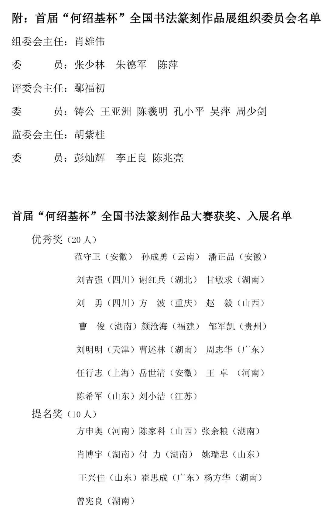 首届“何绍基杯”全国书法篆刻展获奖入展名单公示