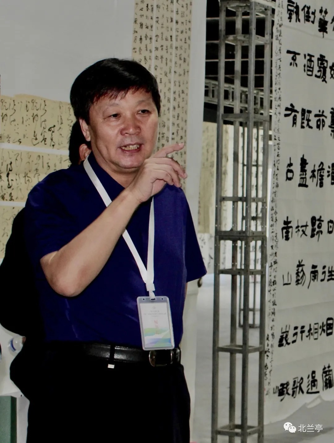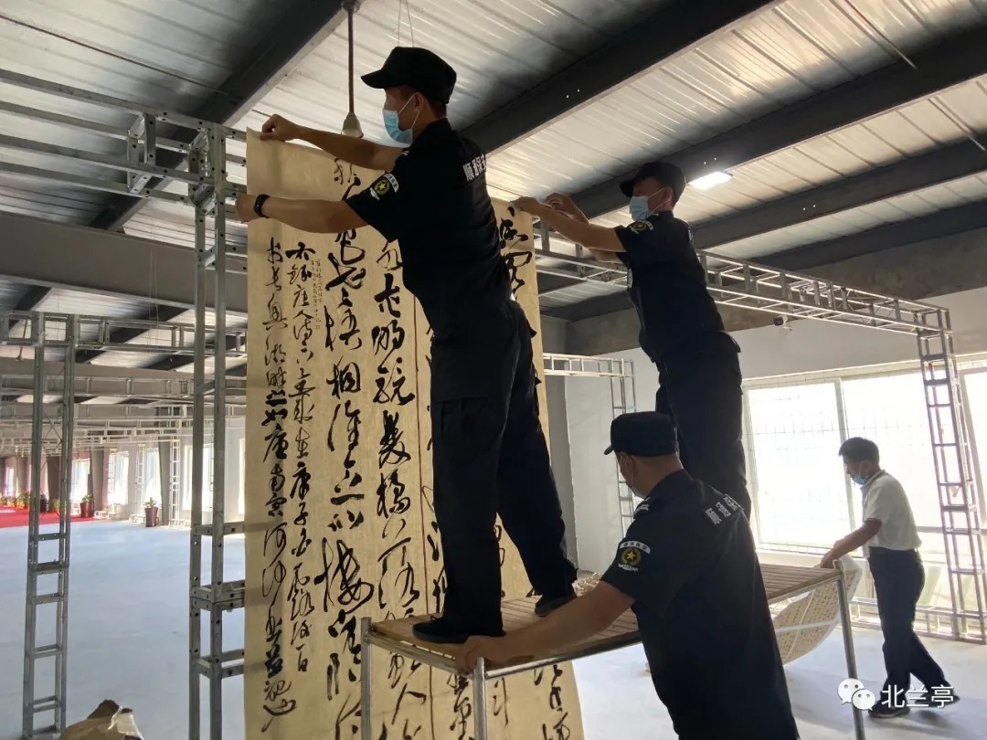 工作人员悬挂入围作品