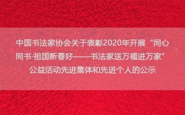 中书协关于表彰2020年开展“同心 同书·祖国新春好书法家送万福进万家”