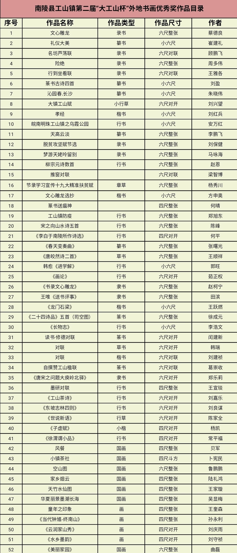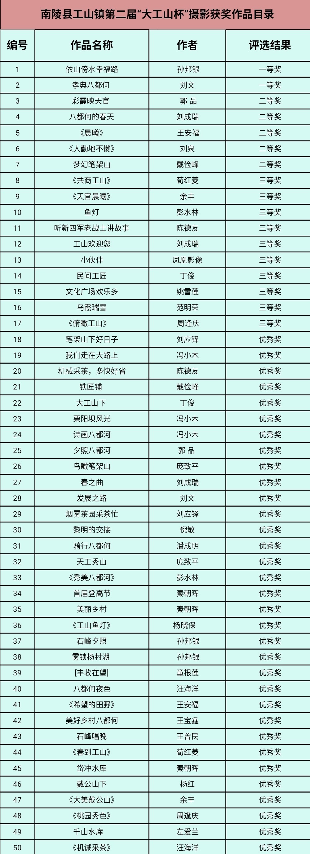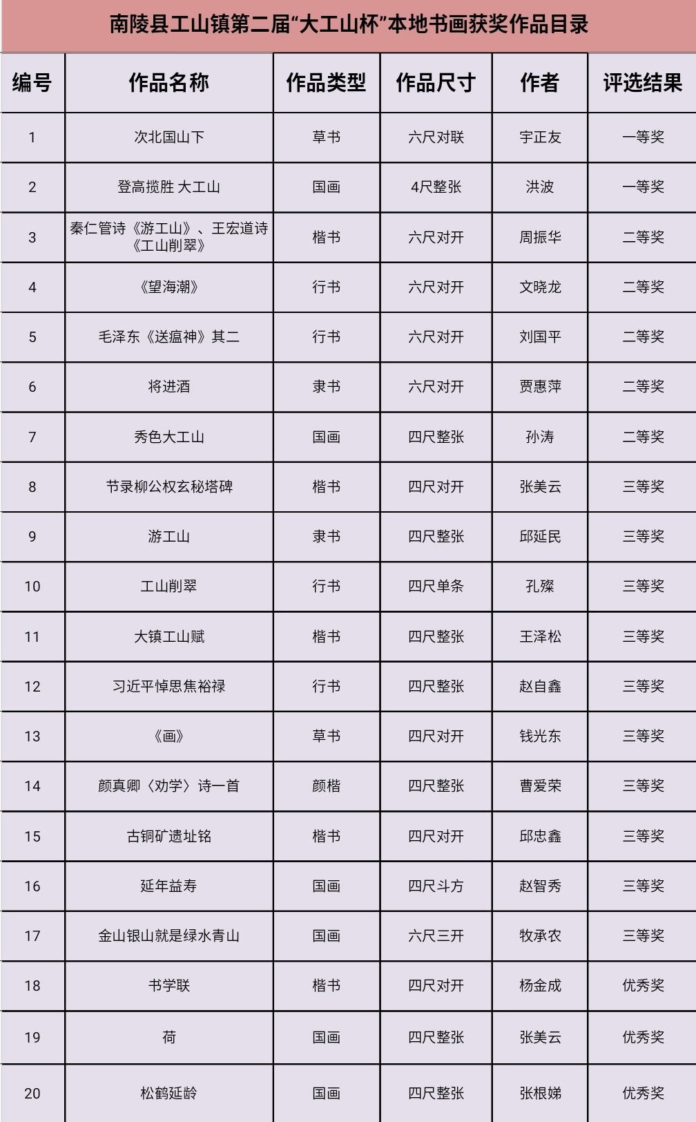 南陵县工山镇第二届“大工山杯”摄影、书画大赛评选结果公告