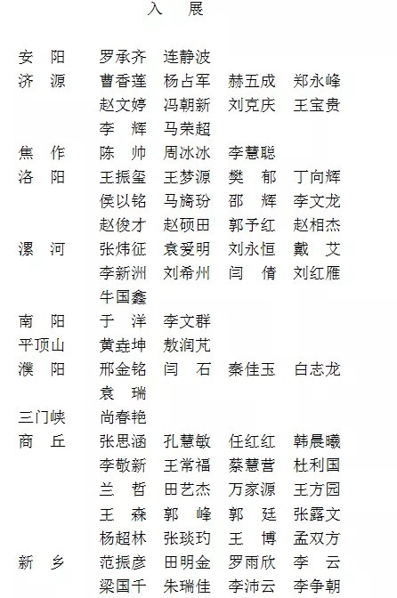 河南省第五届现代刻字艺术展获奖入展公示名单