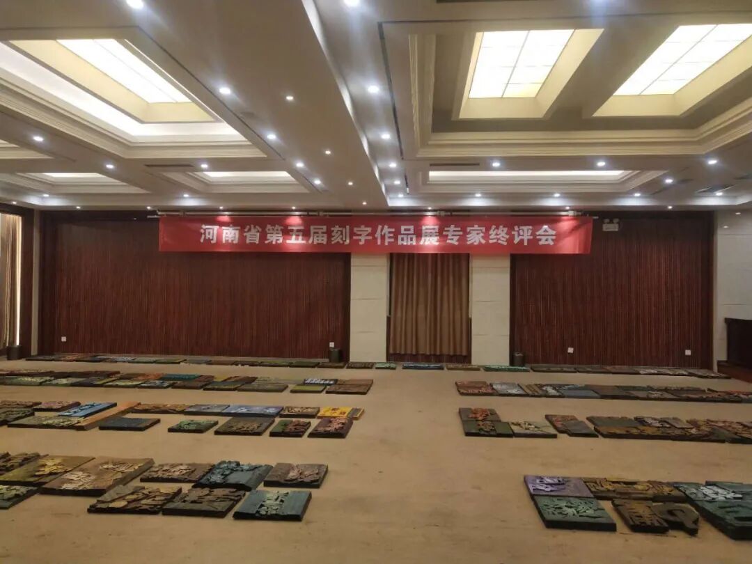 河南省第五届现代刻字艺术展2019年11月15日截稿,共收到290多位作者投稿400余件,初评入选作者230人。因疫情影响,终评延后,至2020年10月21日在新乡县举行。