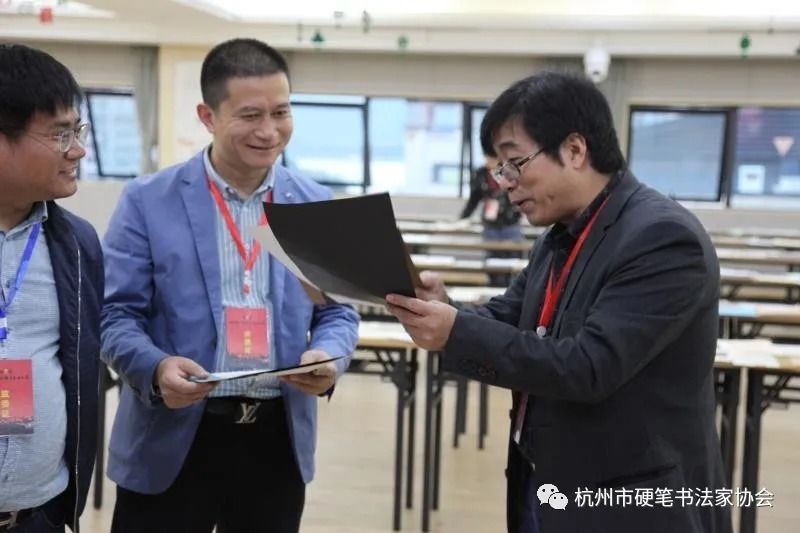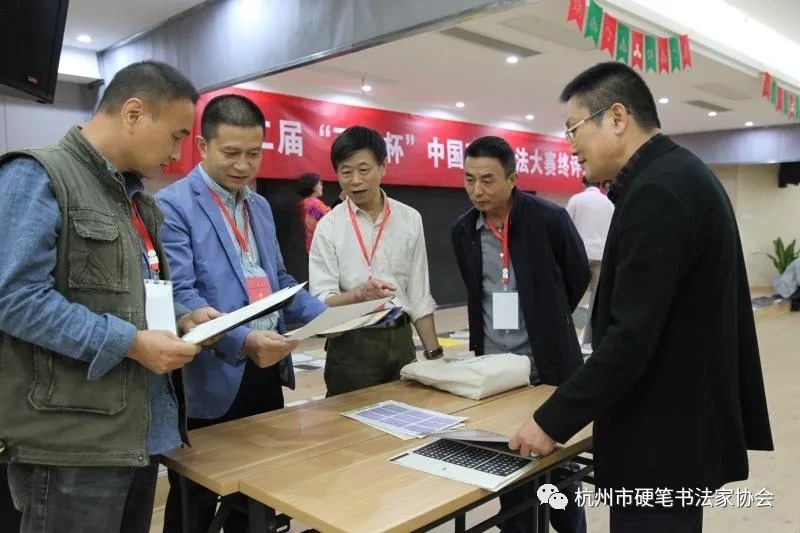 10月20日,杭州市硬笔书法家协会主席团组织王晓斌、杨宇全、蒋采、厉剑飞、郑家禾、王益庸、施建锋、江海波、贾峰磊等9人组成评审委员会,由王晓斌主席担任评委会主任。杭州市文化广电旅游局艺术处领导担任监委会主任,秘书处组织徐超、章建辉、吴利平、陈红萍、张大军等5人担任监委,对评审全程进行监督。