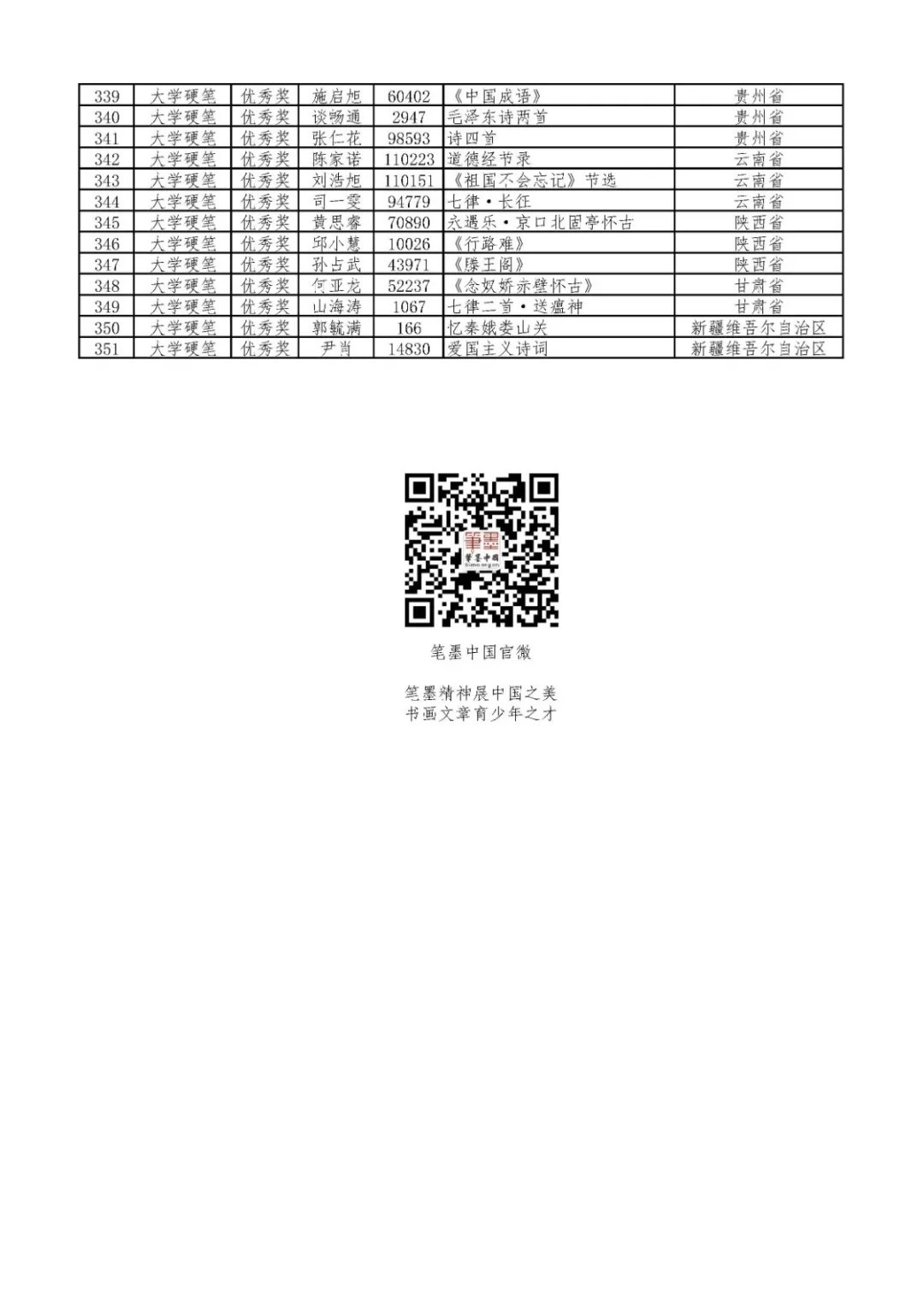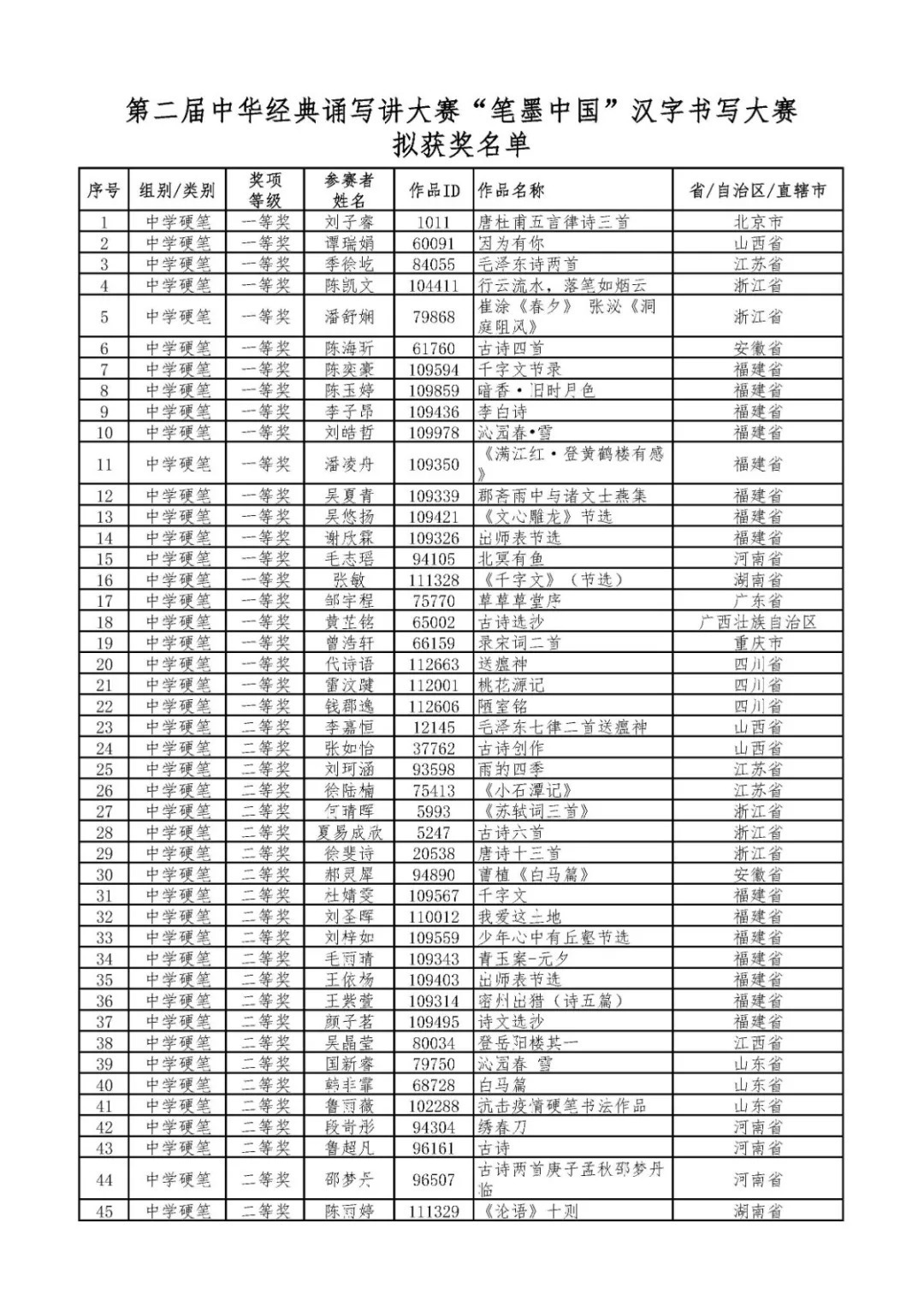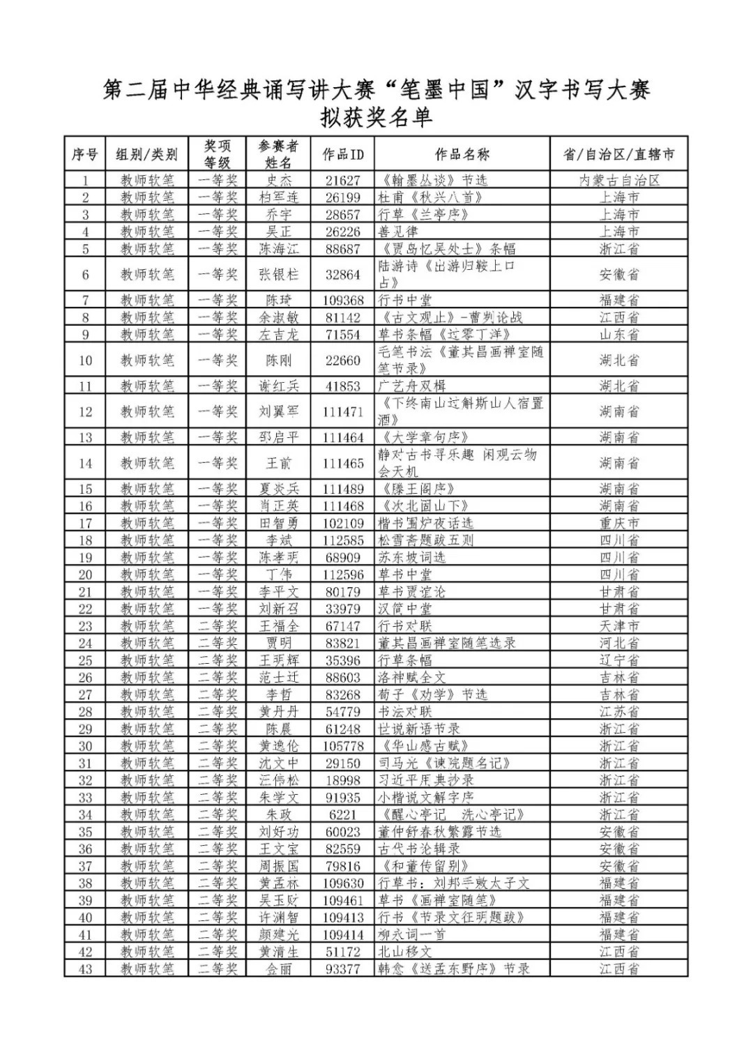 重要通知 | 教育部、国家语委主办“笔墨中国”·汉字书写大赛获拟奖名单公示!