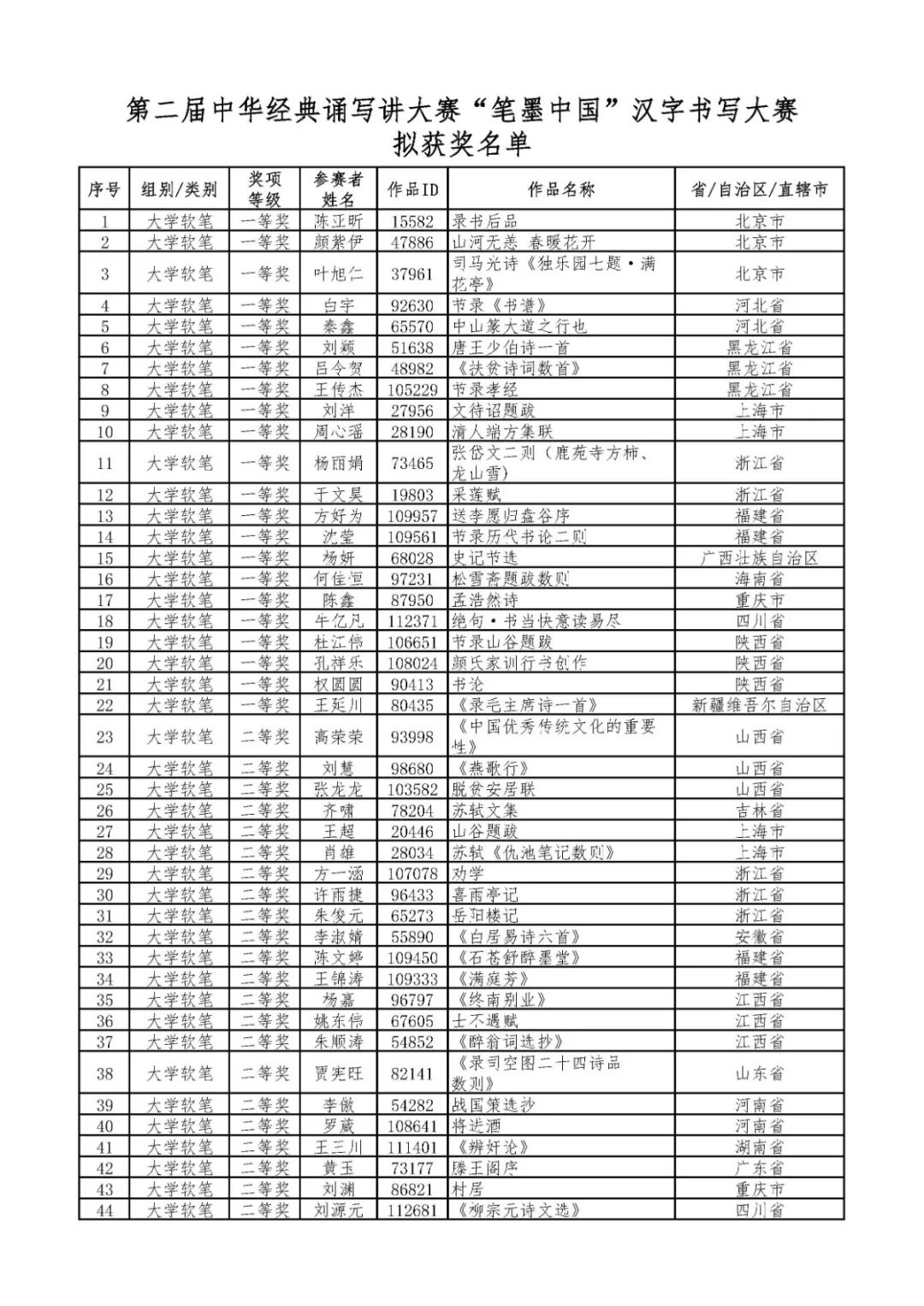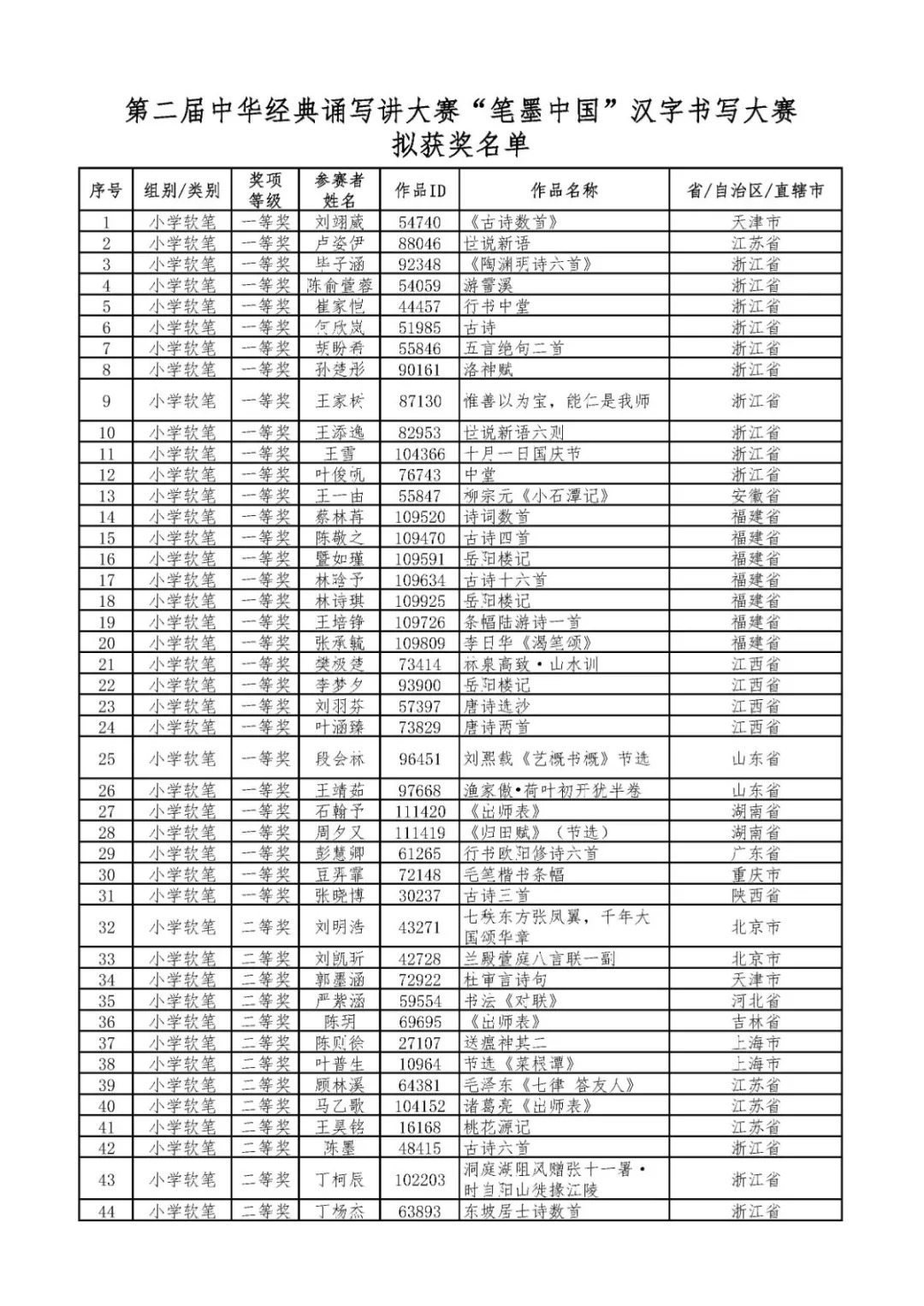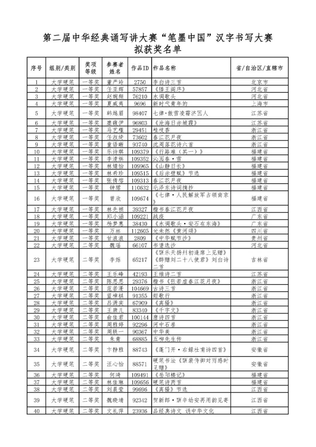 重要通知 | 教育部、国家语委主办“笔墨中国”·汉字书写大赛获拟奖名单公示!