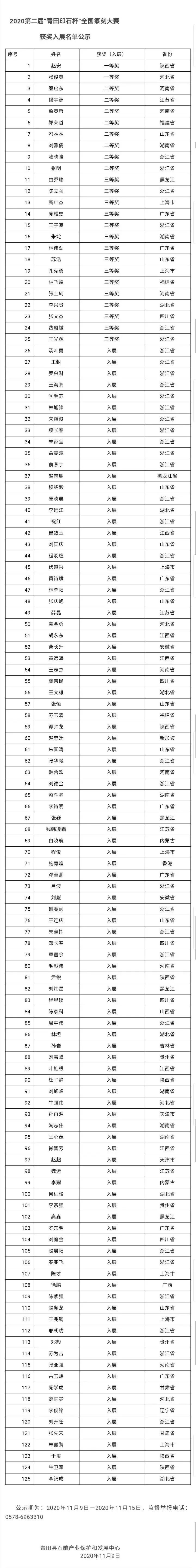 2020第二届“青田印石杯”全国篆刻大赛获奖入展名单公示