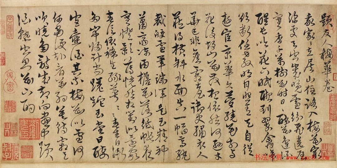 佚名题友人梅花卷,来源:南宋王岩叟梅花诗意图卷后题跋。弗利尔美术馆藏。