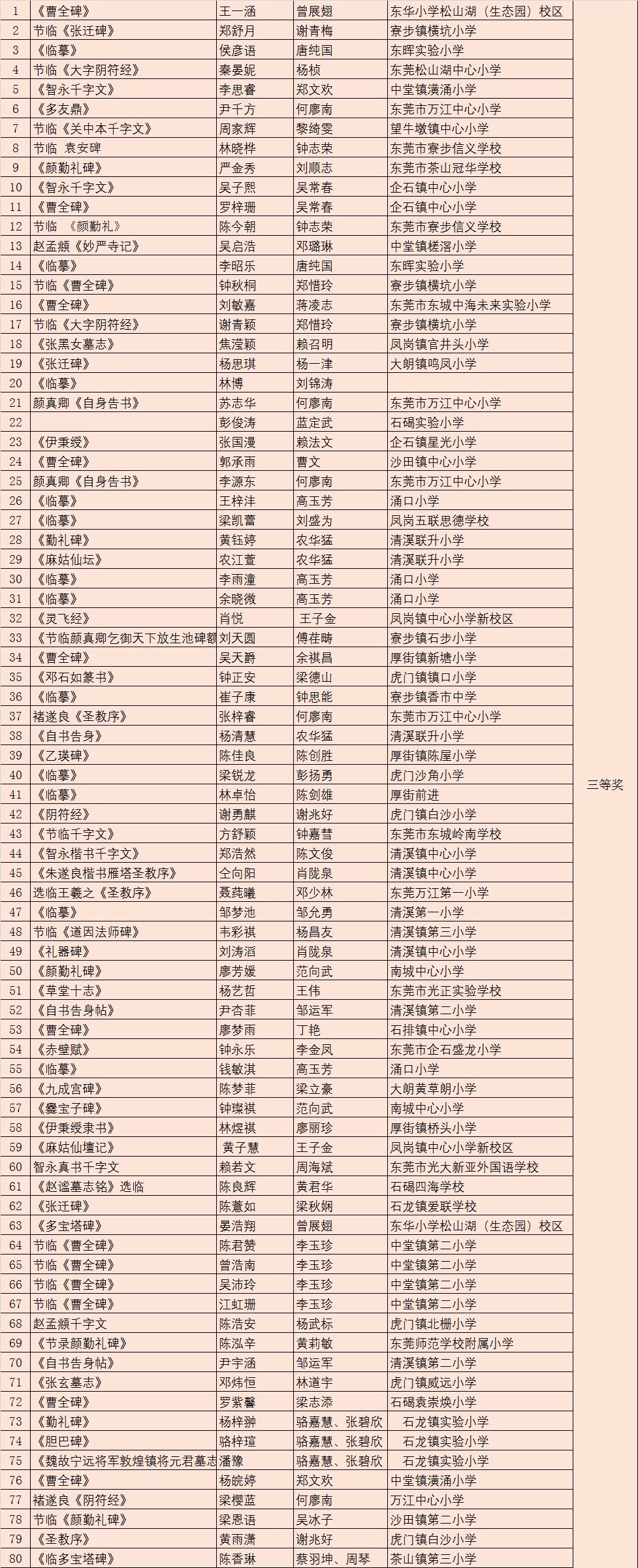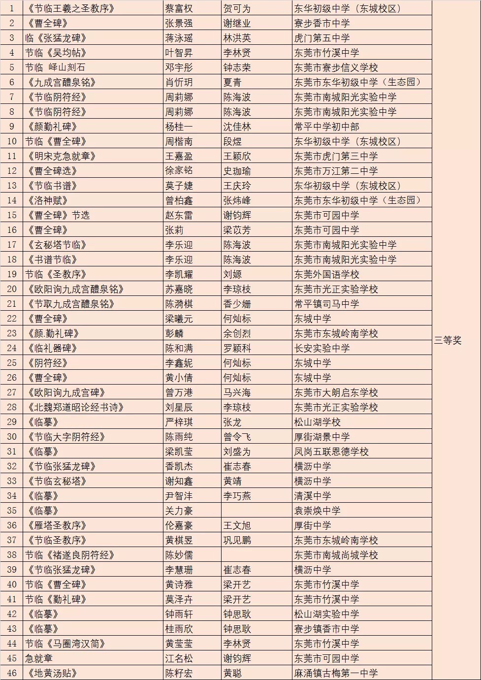 “形式之美”——第二届东莞市青少年临书大赛 获奖名单公示