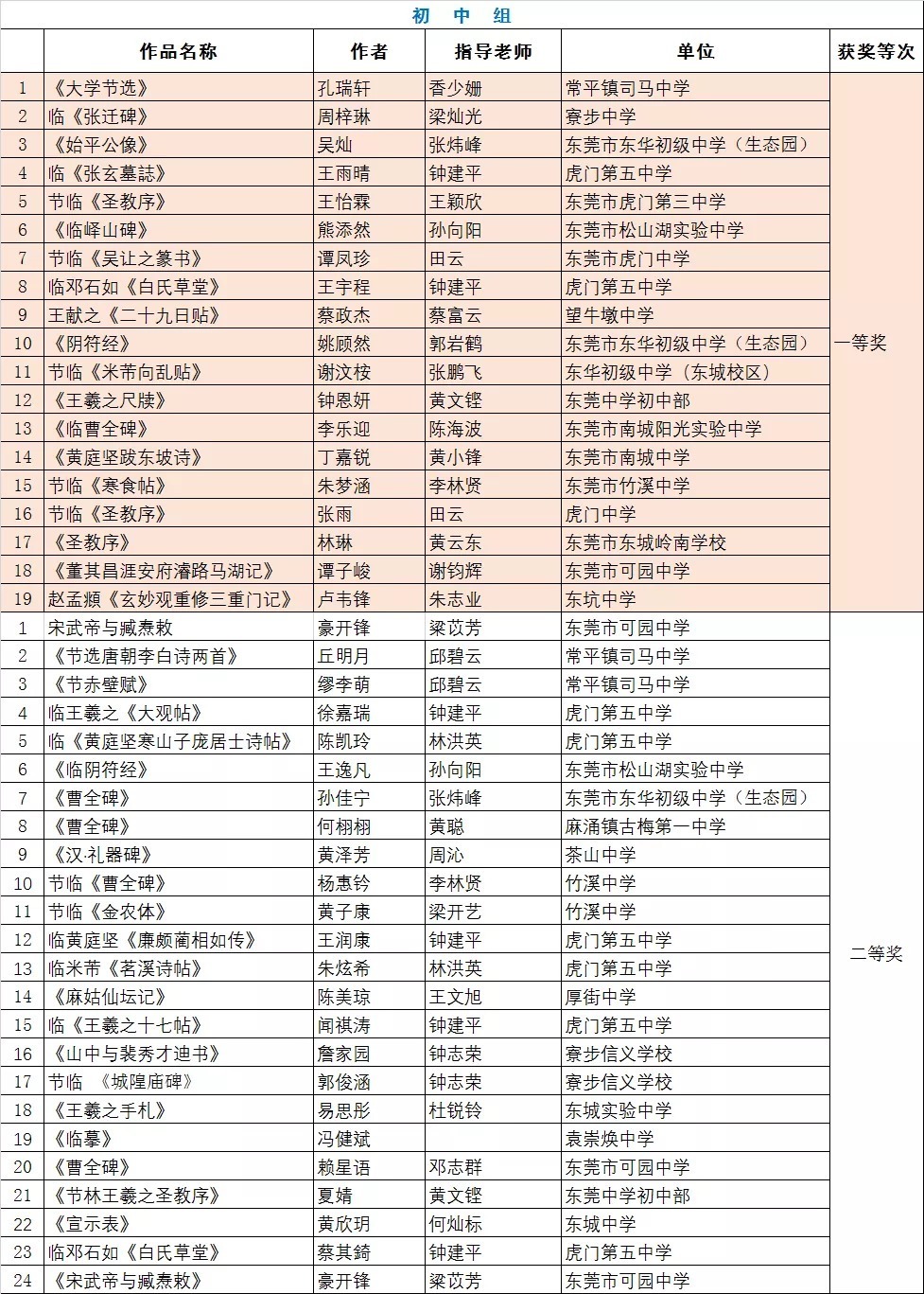 本名单为公示名单,公示期为2020年11月17日至11月24日,共7天。公示期间,如发现教师代笔等违规现象,可向东莞市中小学体育艺术联合会举报。举报材料要求信息准确,事实清楚。举报材料请发至邮箱631007793@qq.com,不接受其它方式的举报。获奖信息(作品名称、师生姓名、学校名称)有误的,请在11月20日前将申请更改发至以上邮箱。