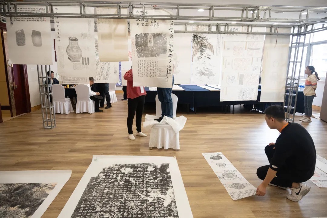 经过初评、复评、终评,最终决出了一等奖作者3名,二等奖作者5名,三等奖作者7名,优秀奖作者15名。 此次拓片题跋展赛活动,较好地诠释了钱塘江精神的新内涵,以较为独特的艺术形式展示文化浙江的新成就。让我们共同期待钱江雅韵——第四届“弄潮杯”钱塘江金石竹木拓片展的开幕! 乾嘉文化团队工作现场: