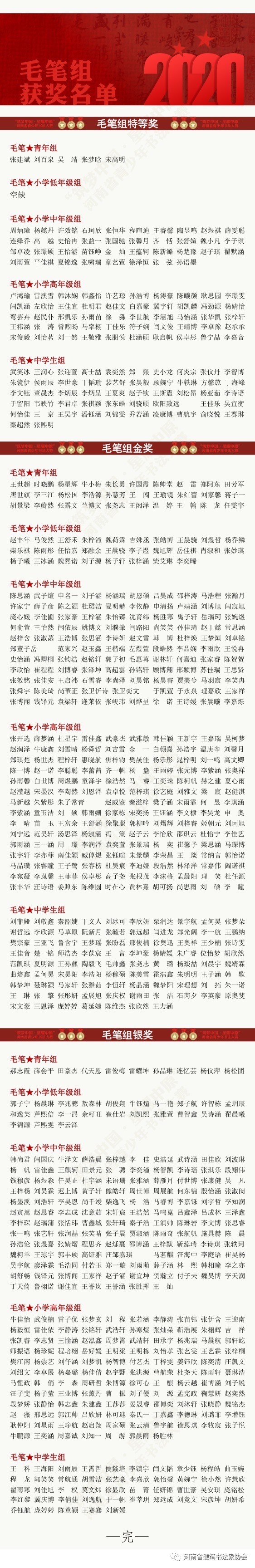 “筑梦中国·星耀中原”河南省青少年书法大赛获奖名单公示